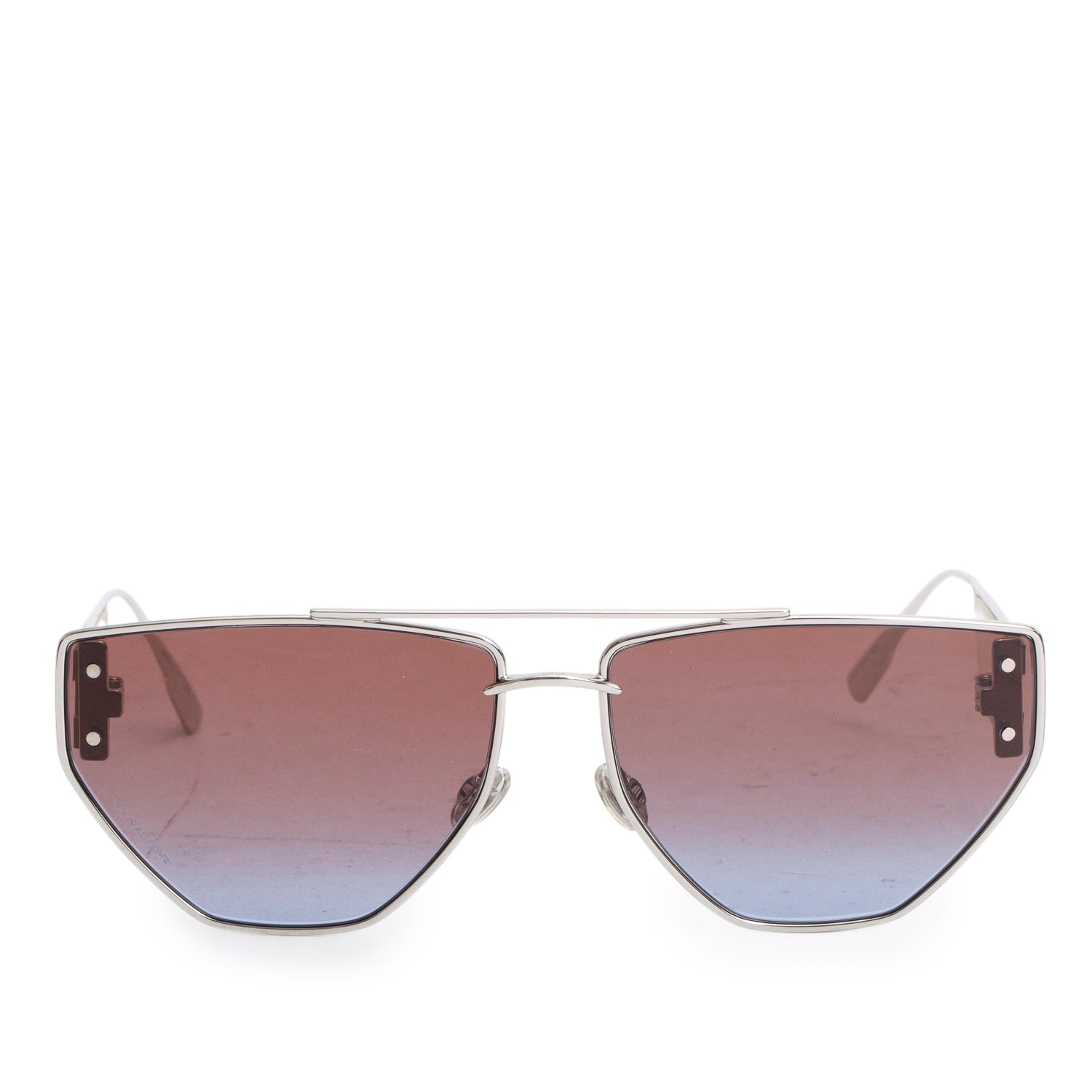 Silver Metal DiorClan2 Aviator Sunglasses w/ Box & Case
