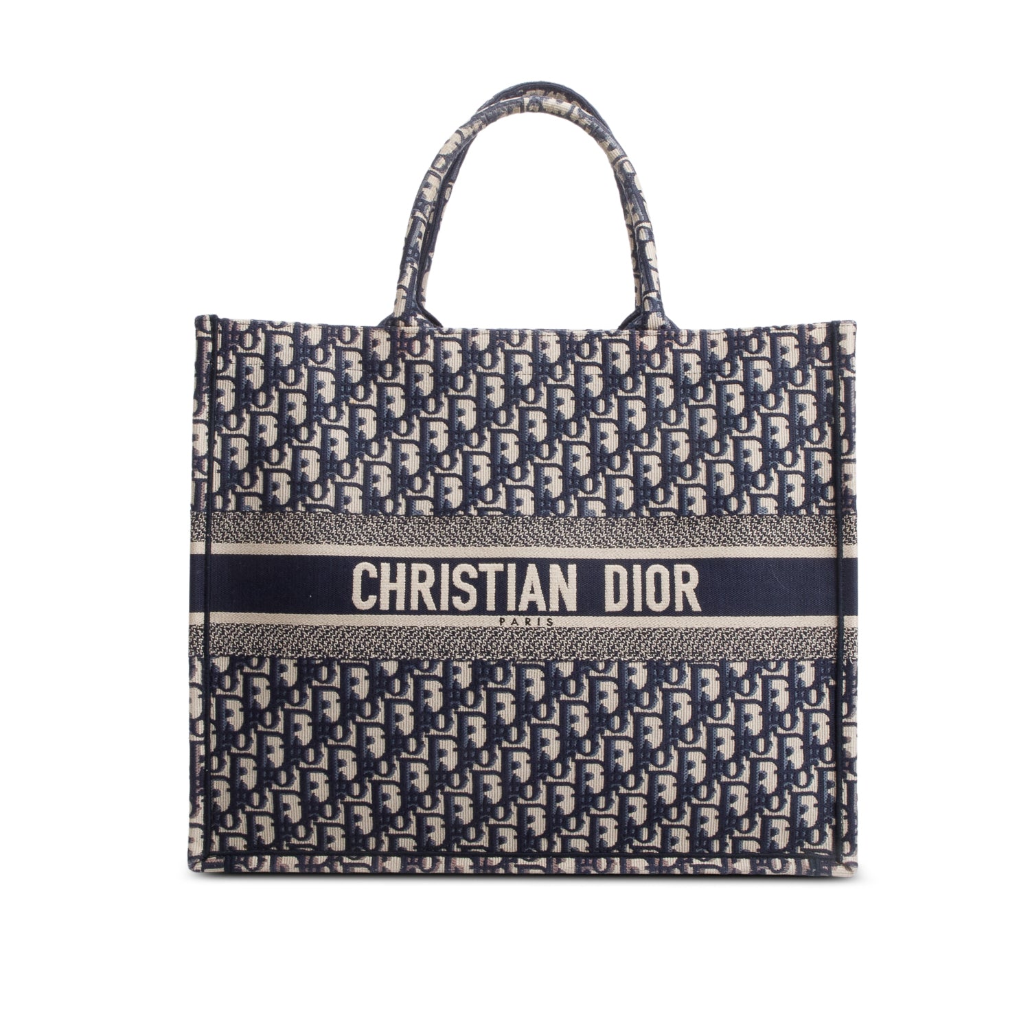 Ecru and Blue Dior Oblique Embroidery Large Book Tote