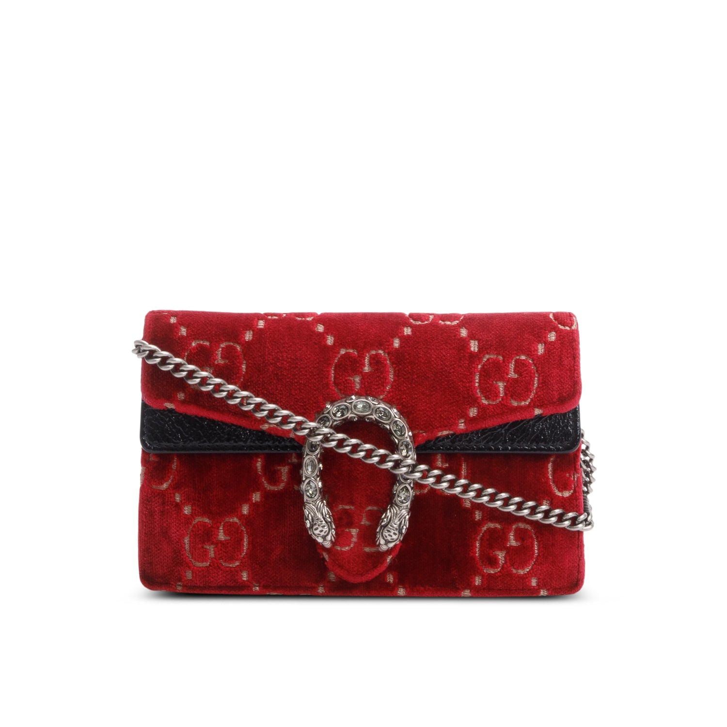 Red GG Embossed Velvet Dionysus Super Mini Bag