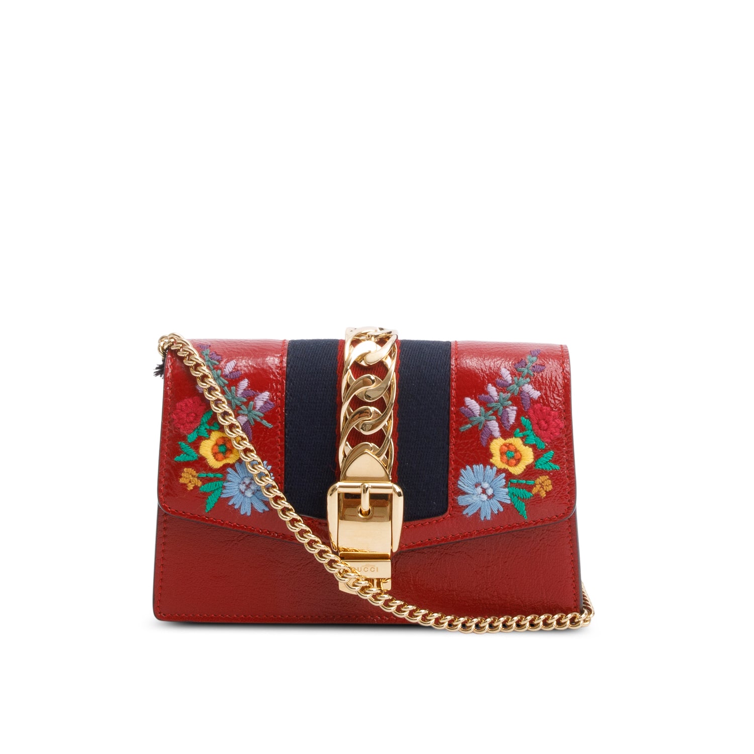 Red Patent Embroidered Super Mini Sylvie Chain Shoulder Bag w/ Box