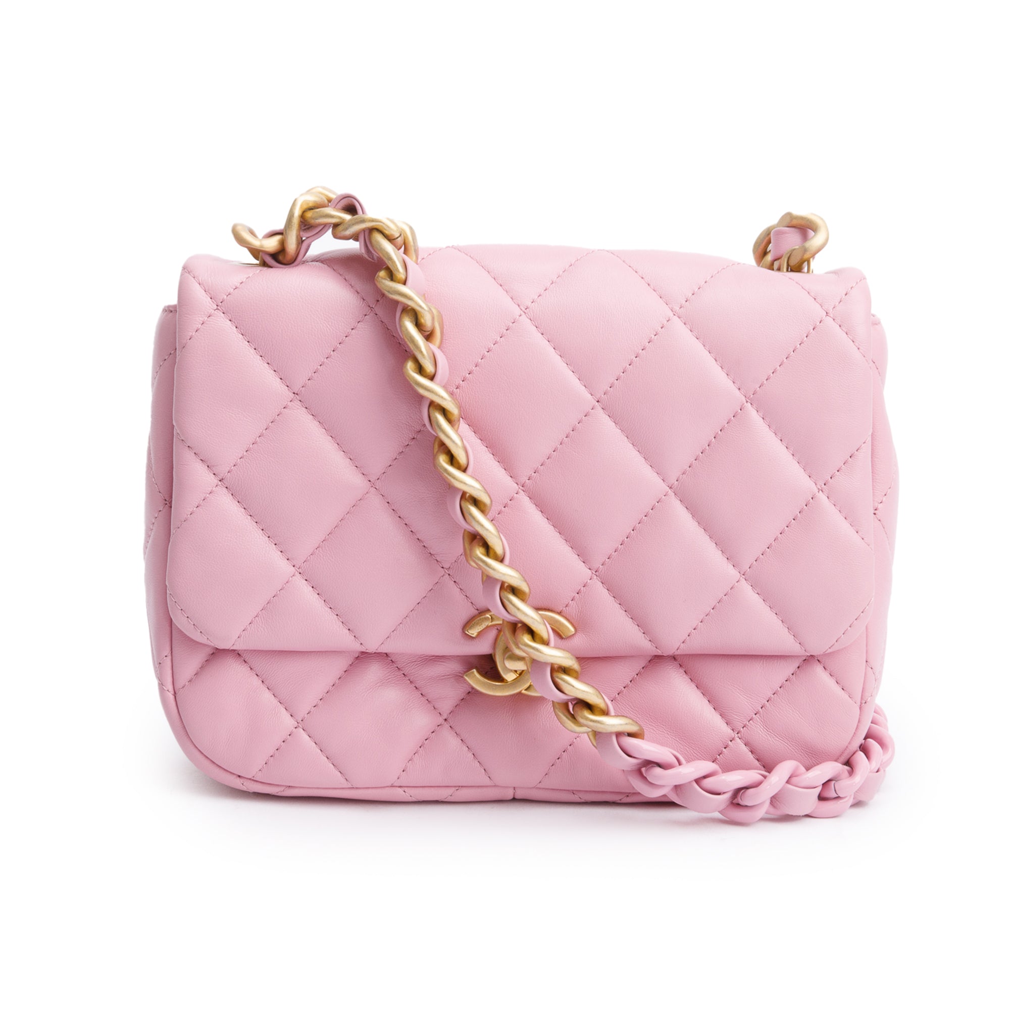 Pink Nappa Matelasse Leather Mini Coffer Bag w/ Strap & Authenticity Card