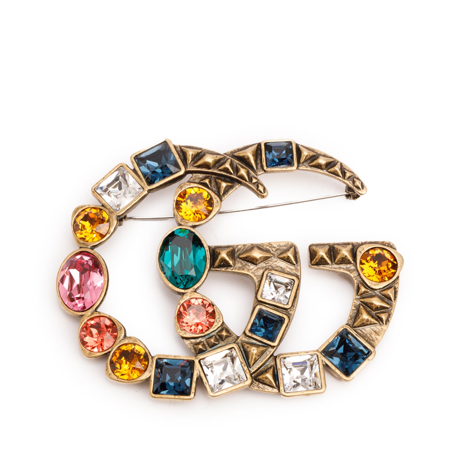 Gold Plated White Resin Strass CC Brooch w/ Box