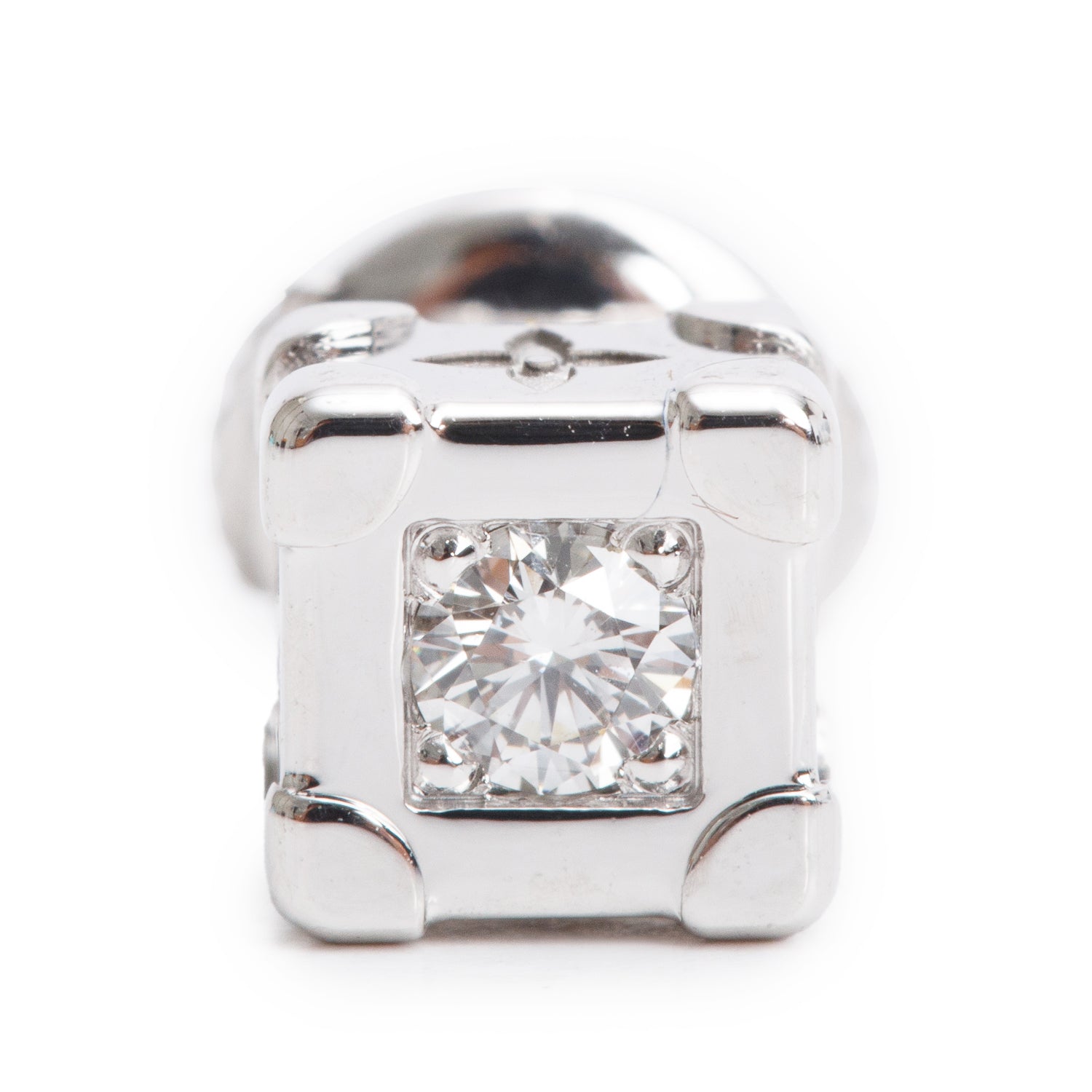 18k White Gold Diamond Les Gastons Vuitton Trunk Single Stud Earring w/ Box