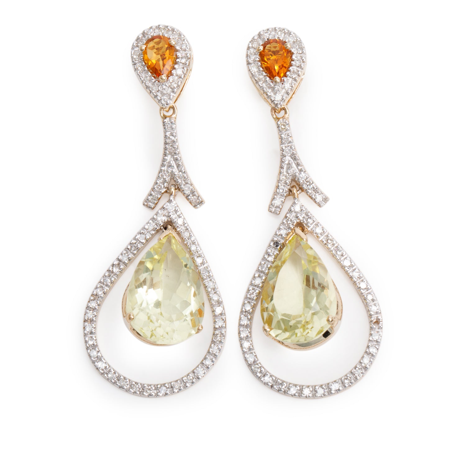 14k Yellow and White Gold Citrine & Diamond Drop Earrings