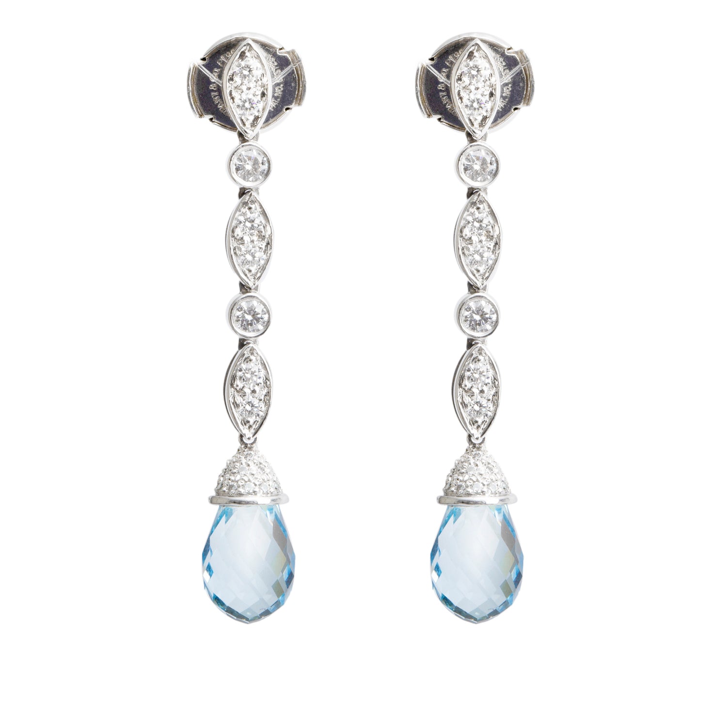 Platinum Aquamarine & Diamond Drop Earrings w/ Box