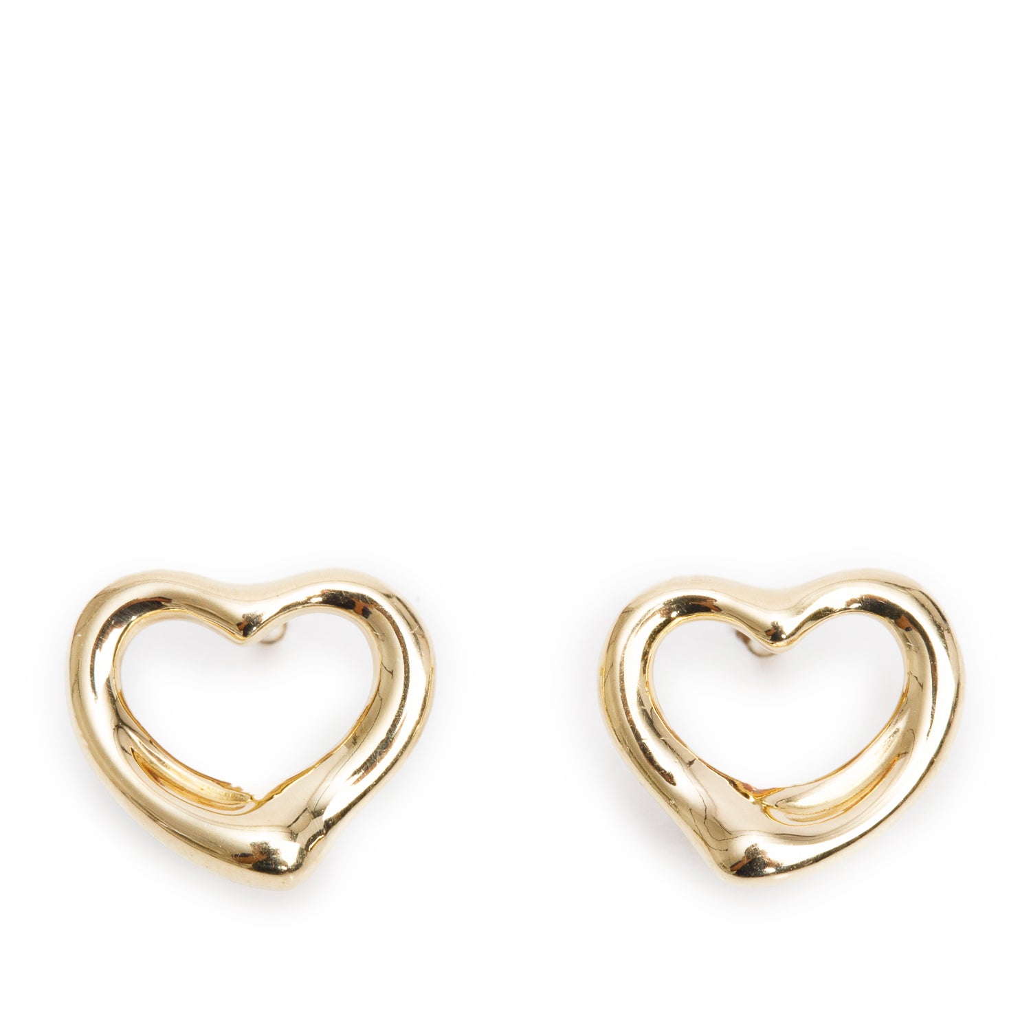 Elsa Peretti 18k Yellow Gold Open Heart Stud Earrings, 11 MM w/ Box