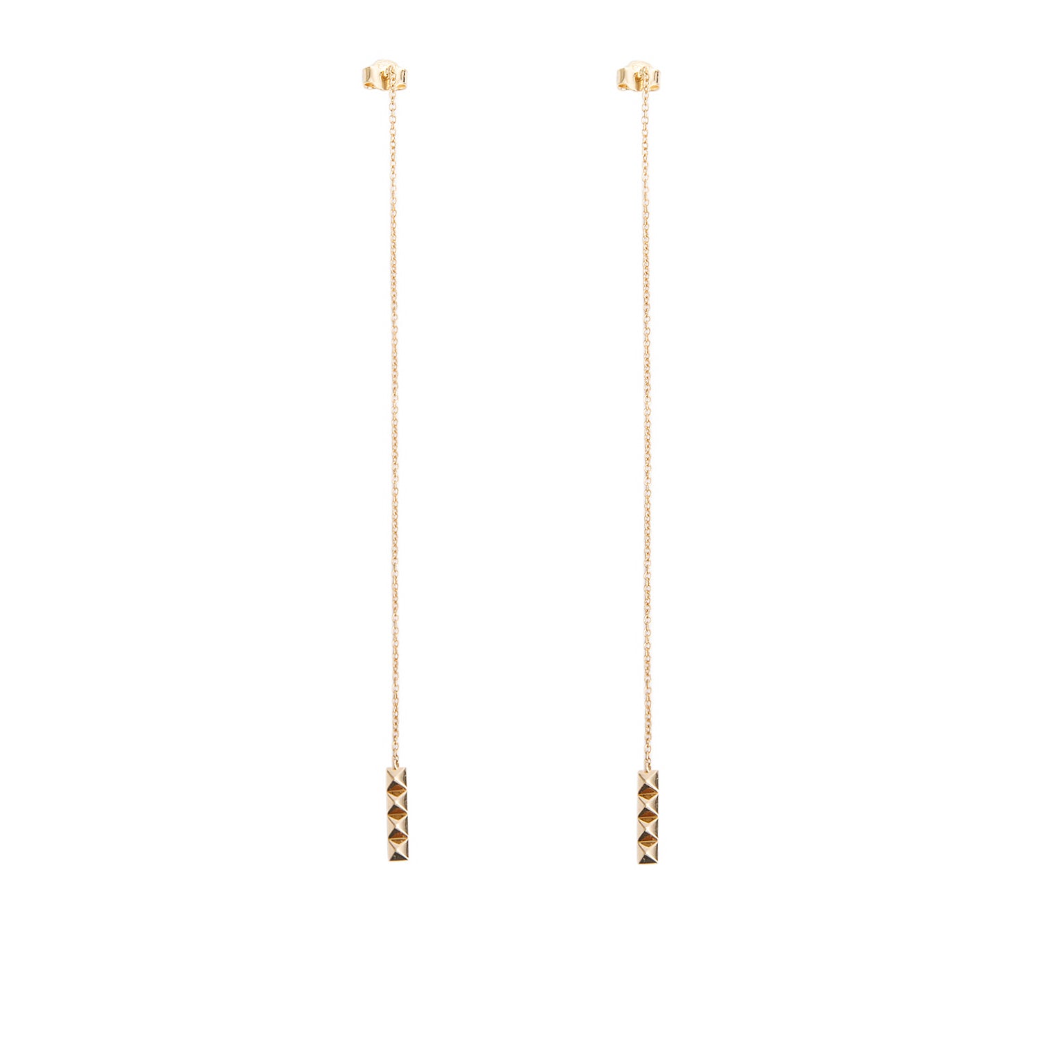 18k Yellow Gold Bar Chain Drop Earrings