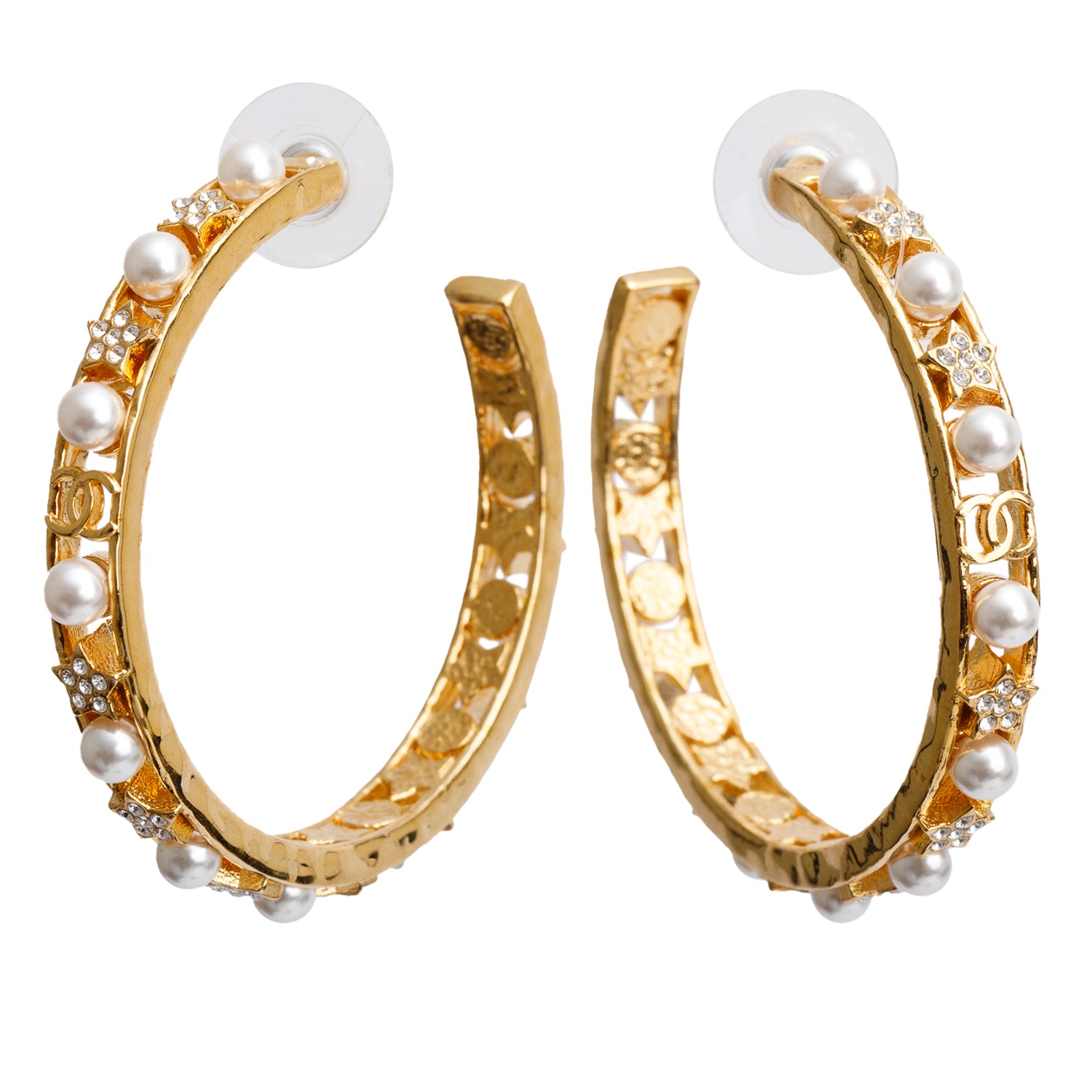 2020 Gold Plated Faux Pearl & Strass Hoop Earrings w/ Box