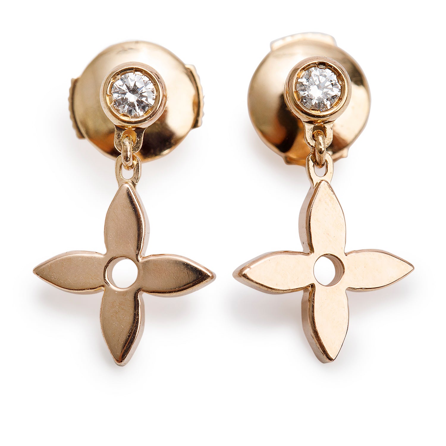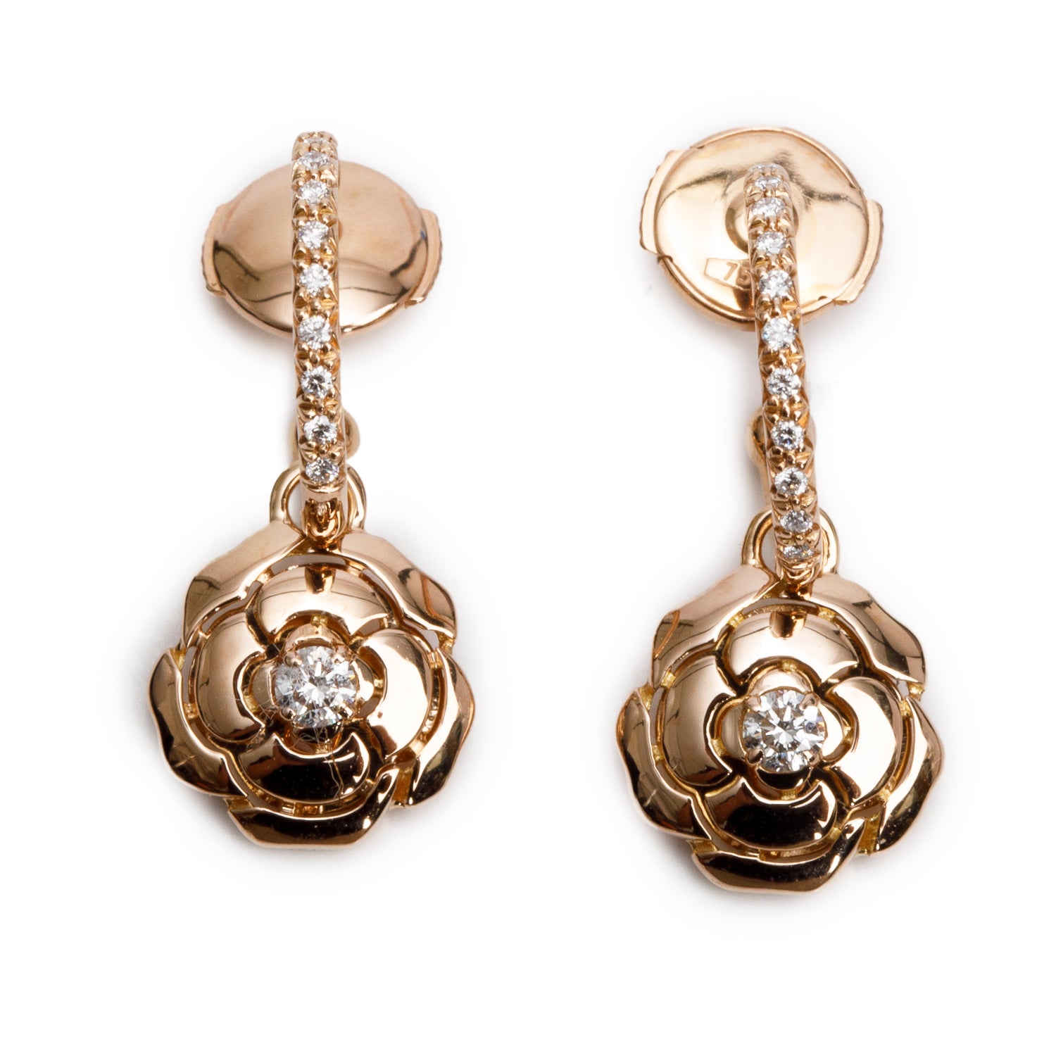 18k Rose Gold Diamond Extrait de Camelia Earrings w/ Box & Certificate