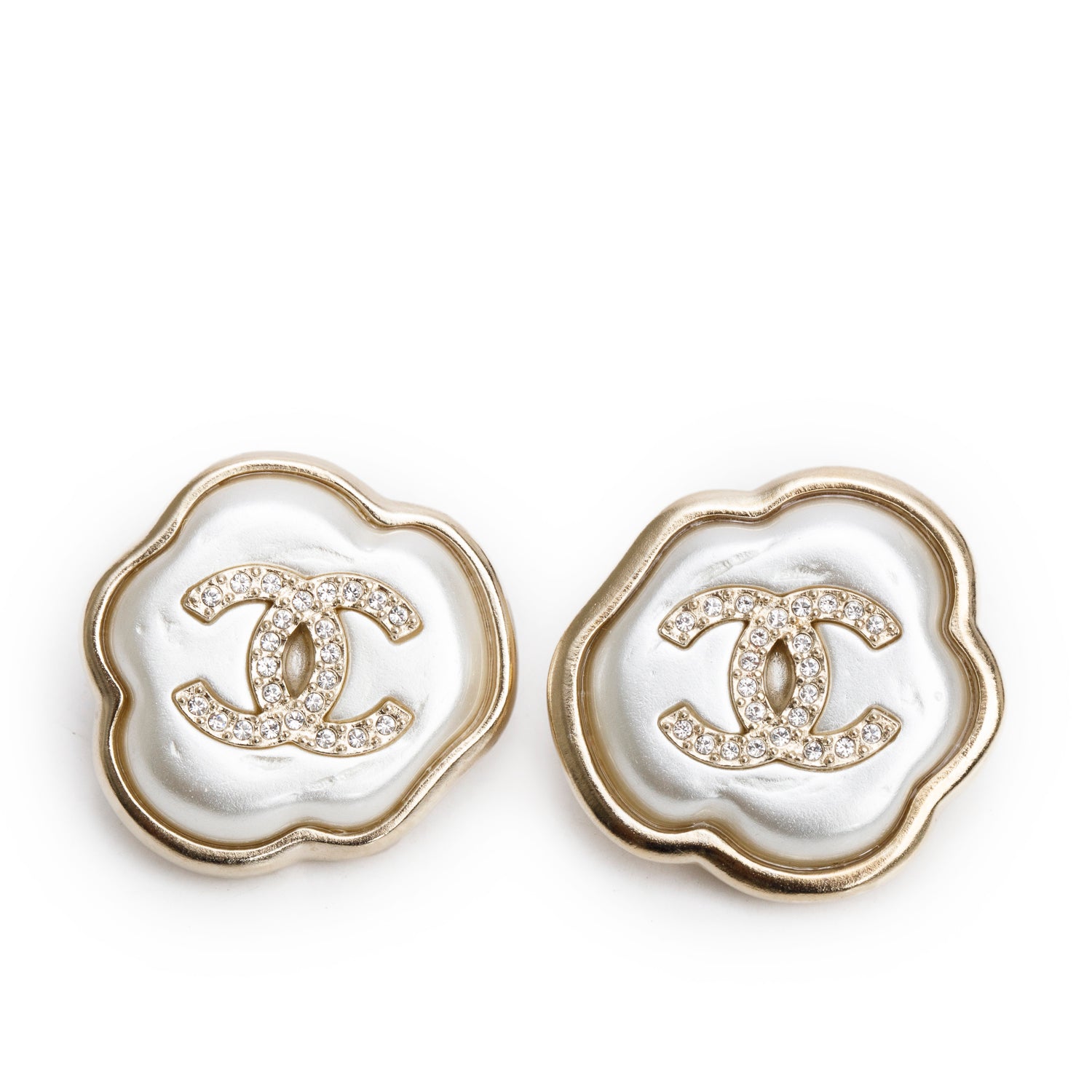 2025 Gold-Plated Faux Pearl & Strass CC Stud Earrings w/ Box