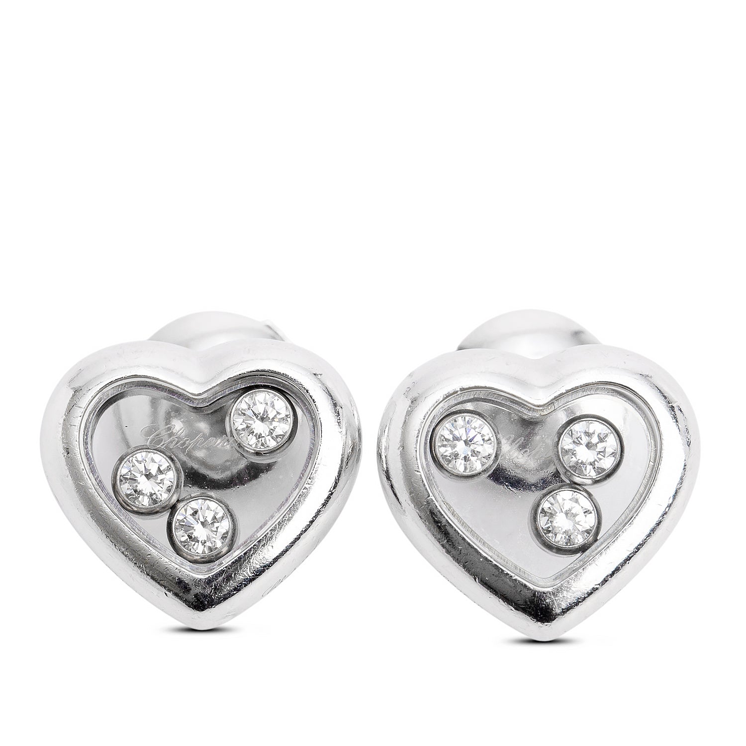 18k White Gold Happy Diamonds Heart Stud Earrings