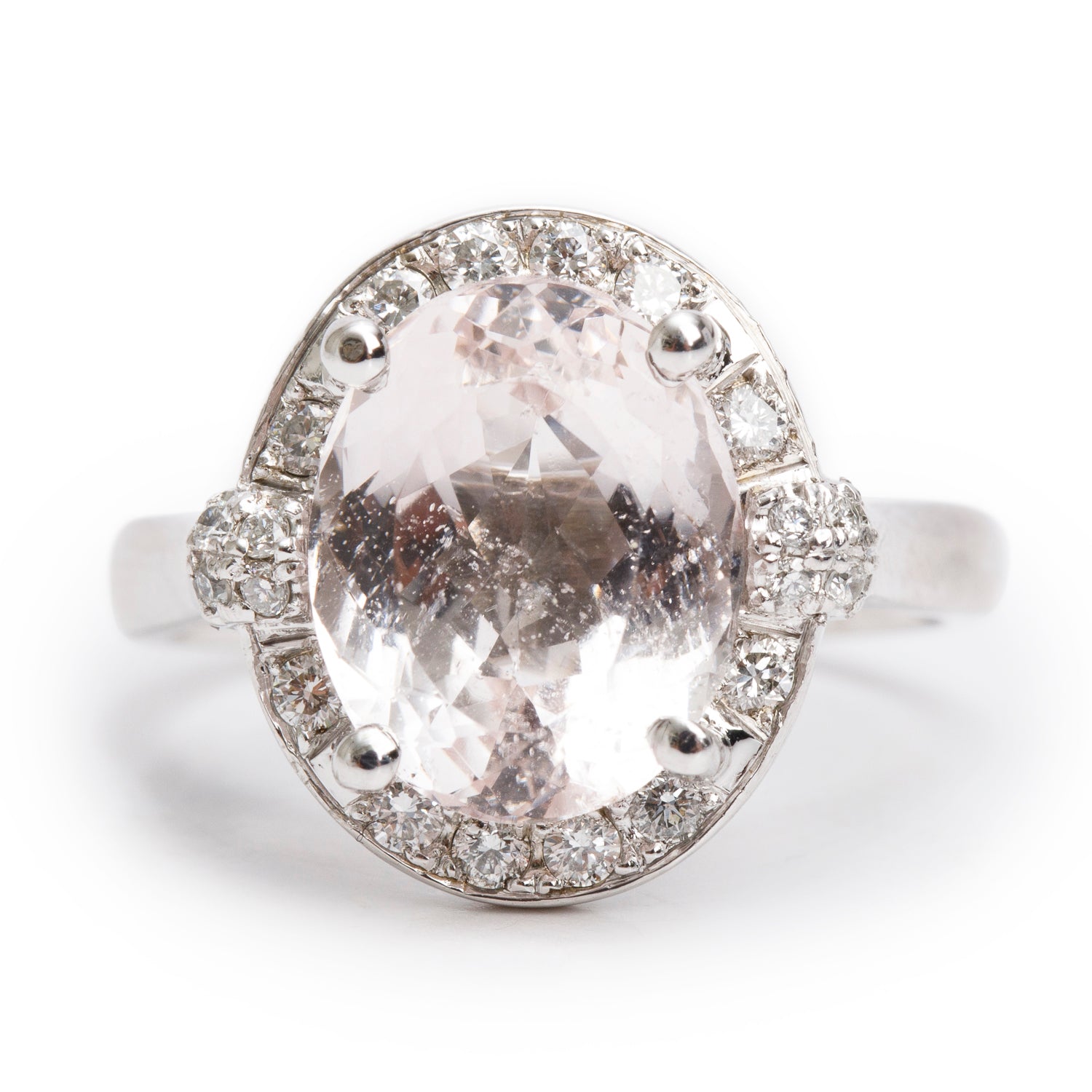 14k White Gold Opal and Diamond Cocktail Ring, Size 5