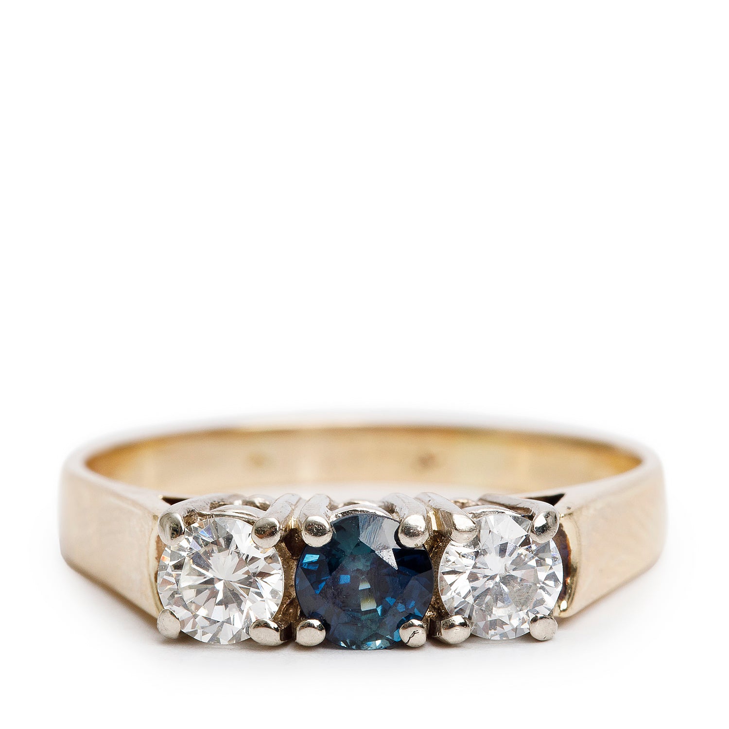 14k Yellow & White Gold Sapphire and Diamond Three-Stone Ring, Size 8.5