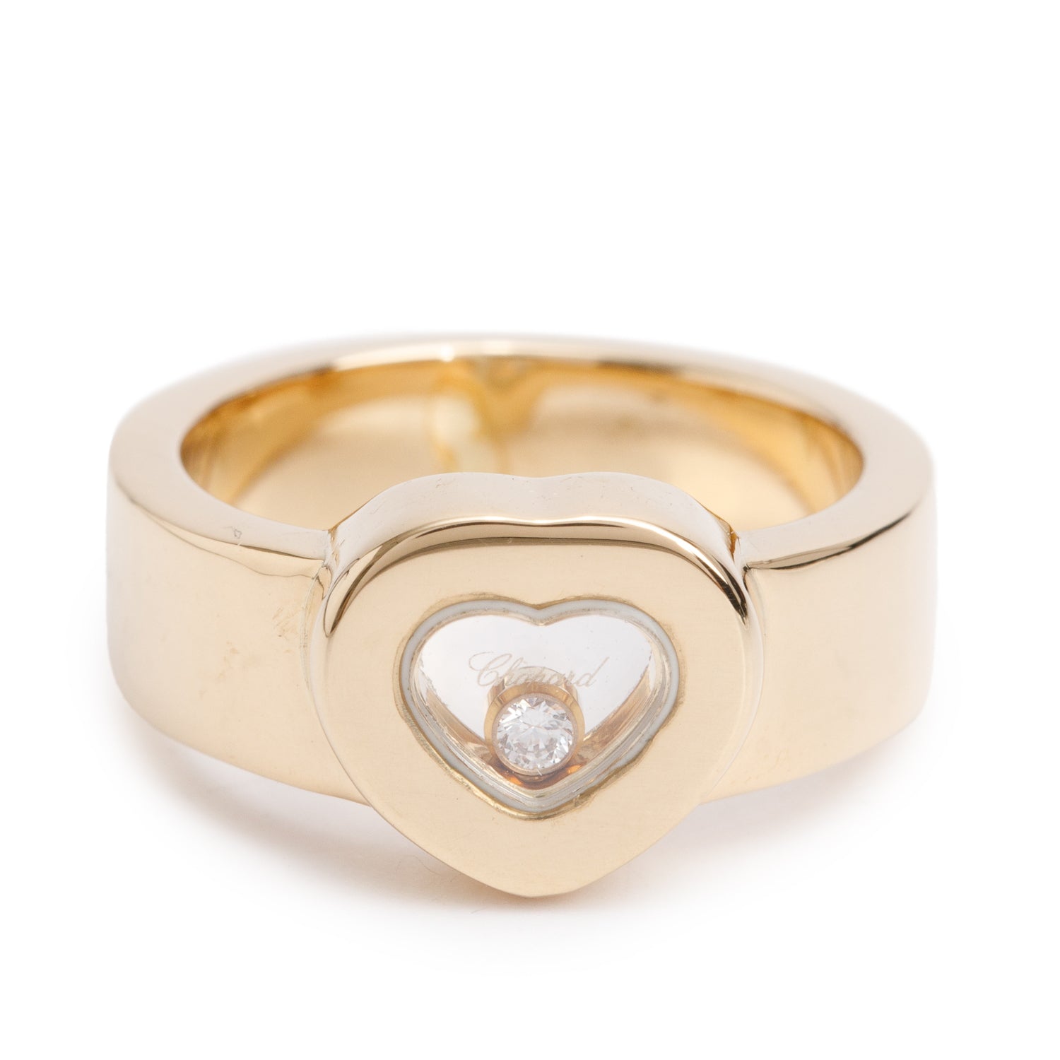 18k Yellow Gold Happy Diamonds Heart Cocktail Ring, Size 4.75