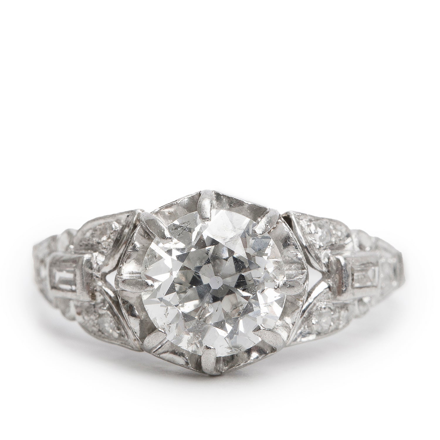 Antique Art Deco Platinum Diamond Ring, Size 6.5