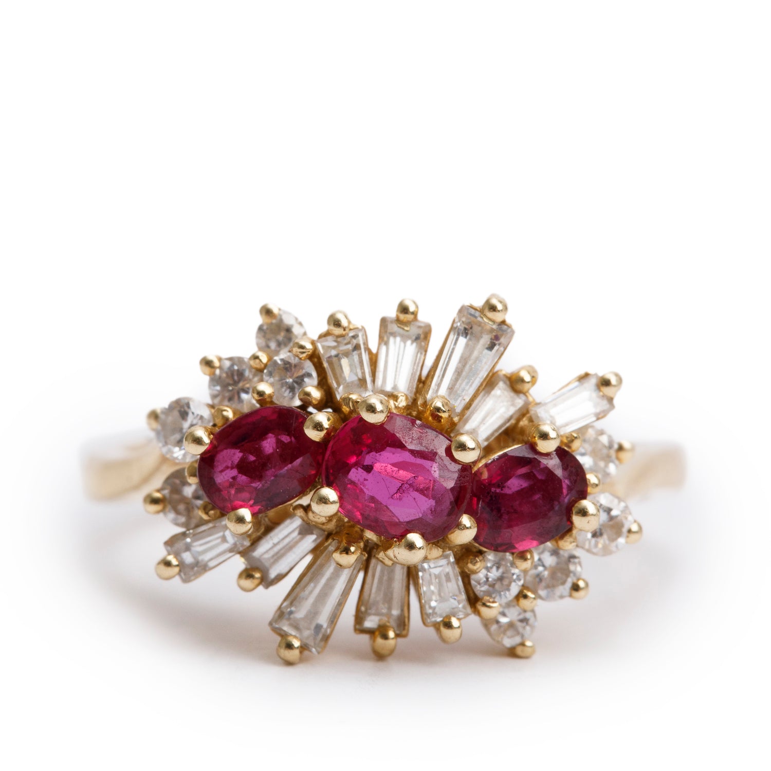 14k Yellow Gold Ruby and Diamond Cocktail Ring, Size 6.25