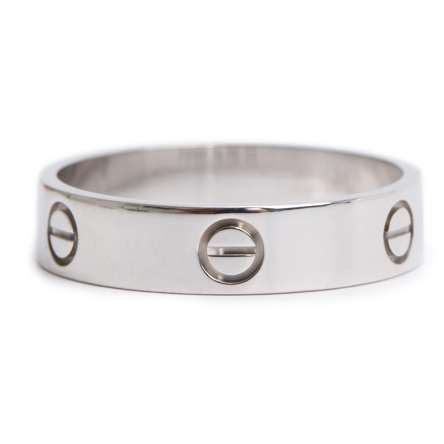 18k White Gold Paved Diamond 4 MM Love Ring, Small Model Size 51 5.75 w/ Box & Certificate