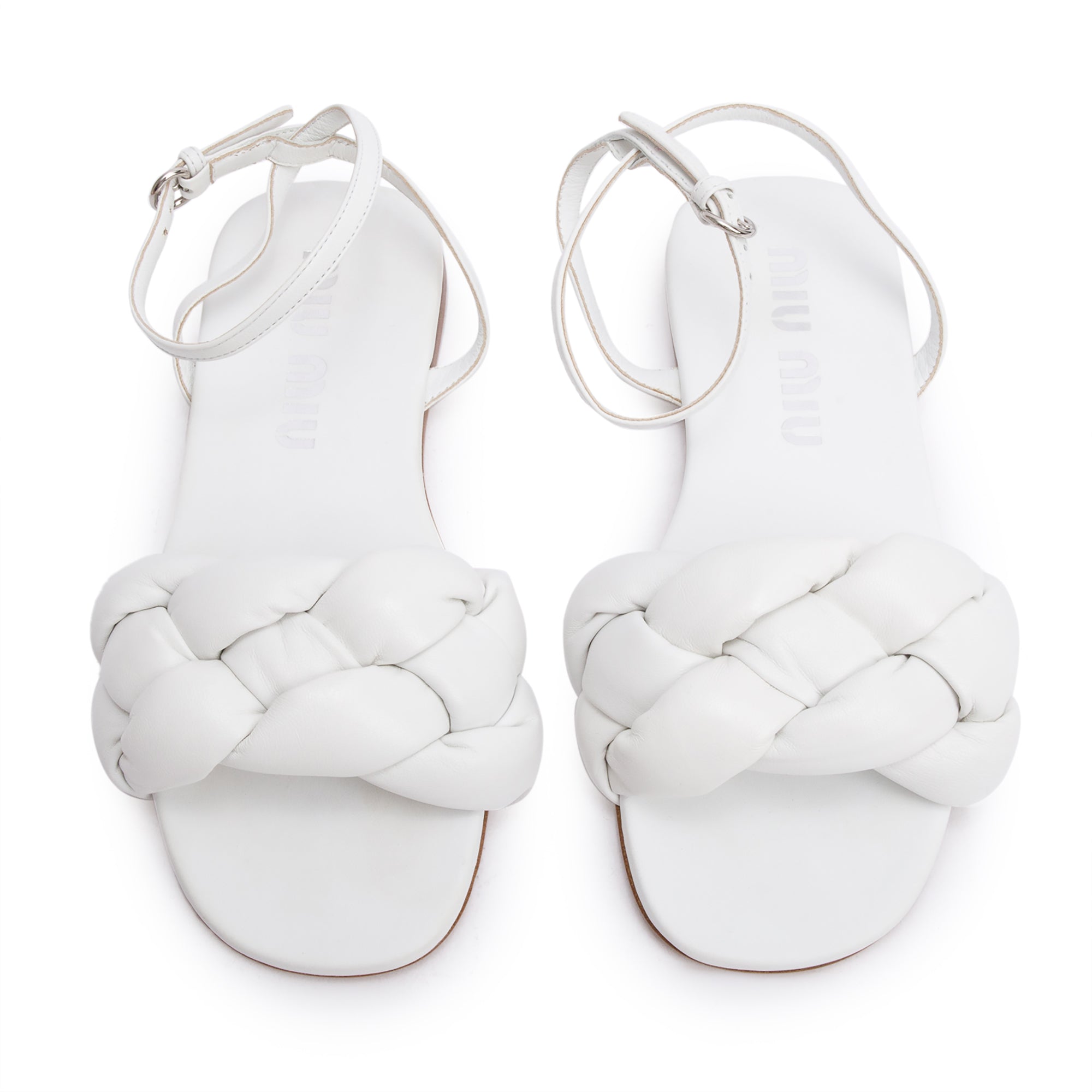 White Nappa Leather Puffy Sling Back Flat Sandals, Size 35.5