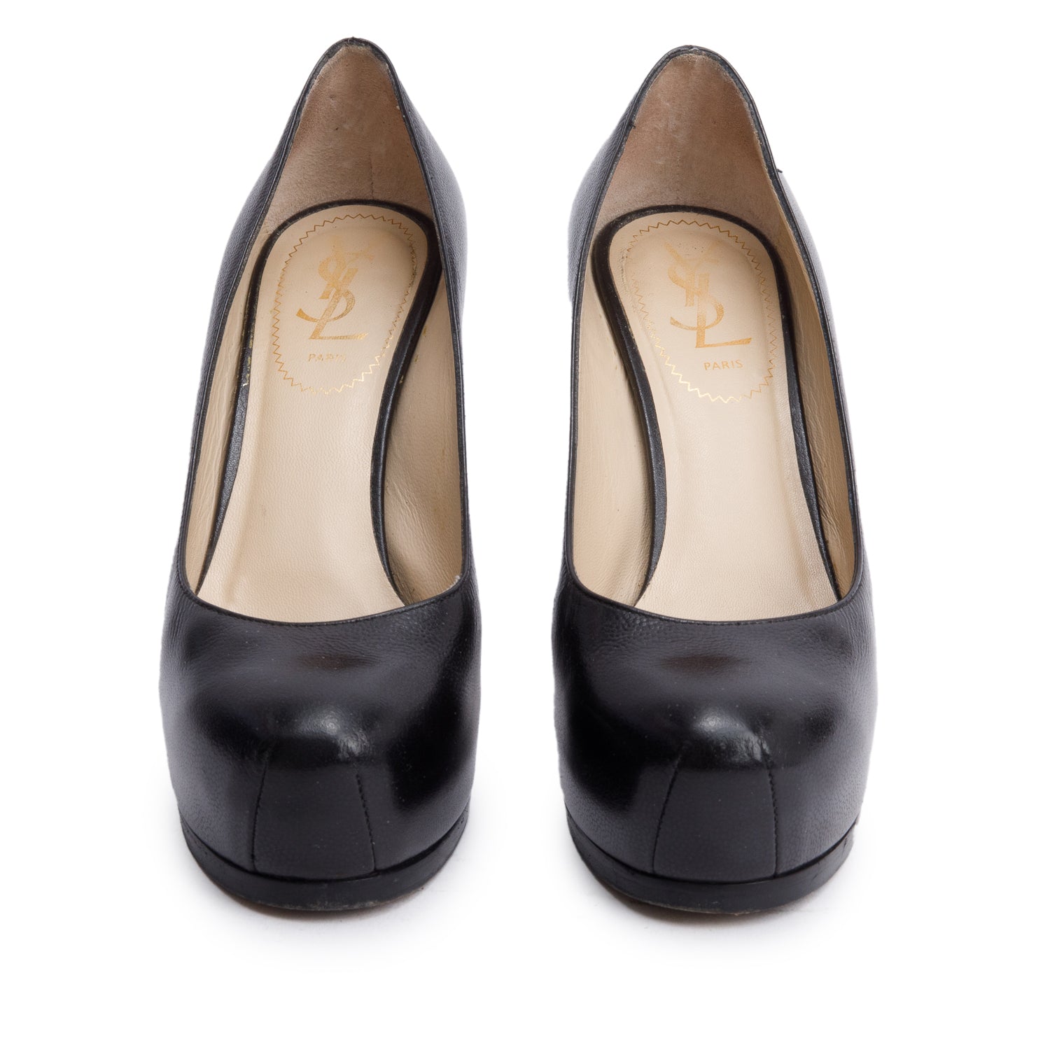 Black Leather Tribtoo 85 Platform Pumps, Size 36.5 w/ Box