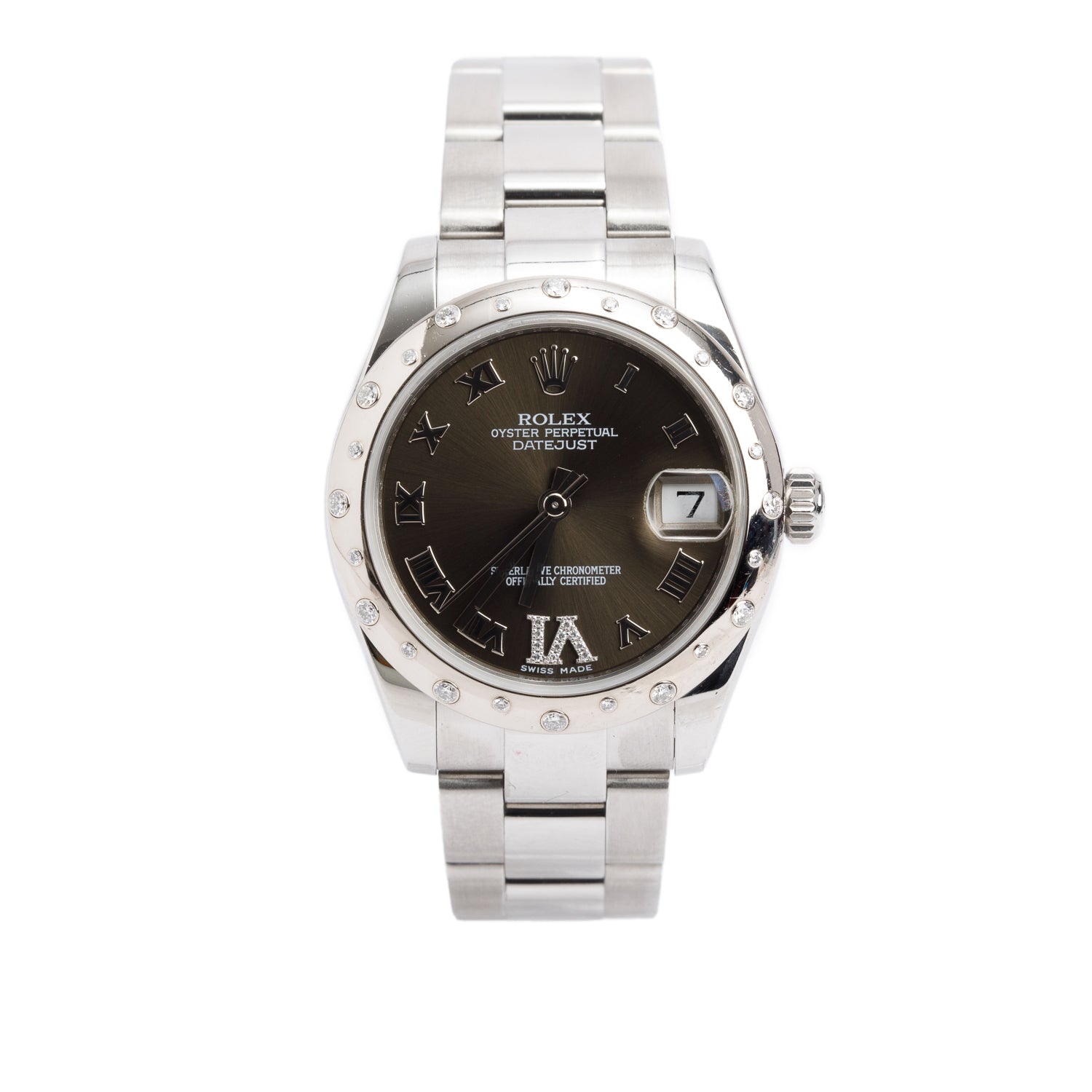Stainless Steel Diamond Bezel Datejust 31 MM Automatic Watch Brown Diamond Dial 178344 w/ Box & Papers