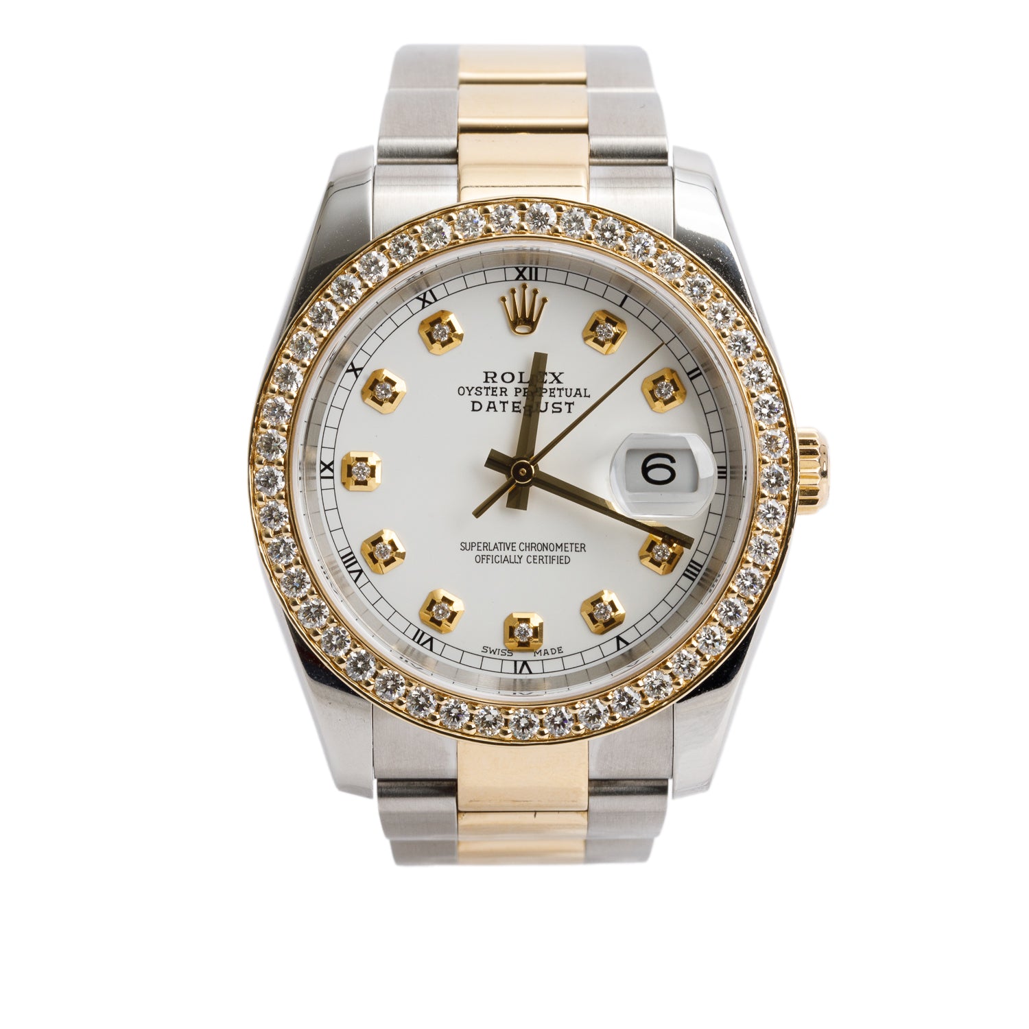 Stainless Steel & 18k Yellow Gold Diamond Bezel Datejust 36 MM Watch White Diamond Dial 116203 w/ Box