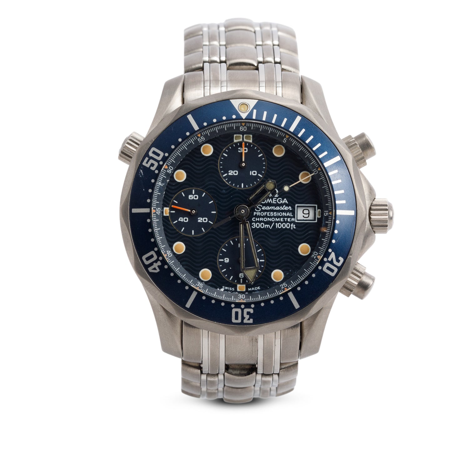 Titanium Seamaster Diver 300M 41.5 MM Automatic Chronograph Watch Blue Dial w/ Box & Papers