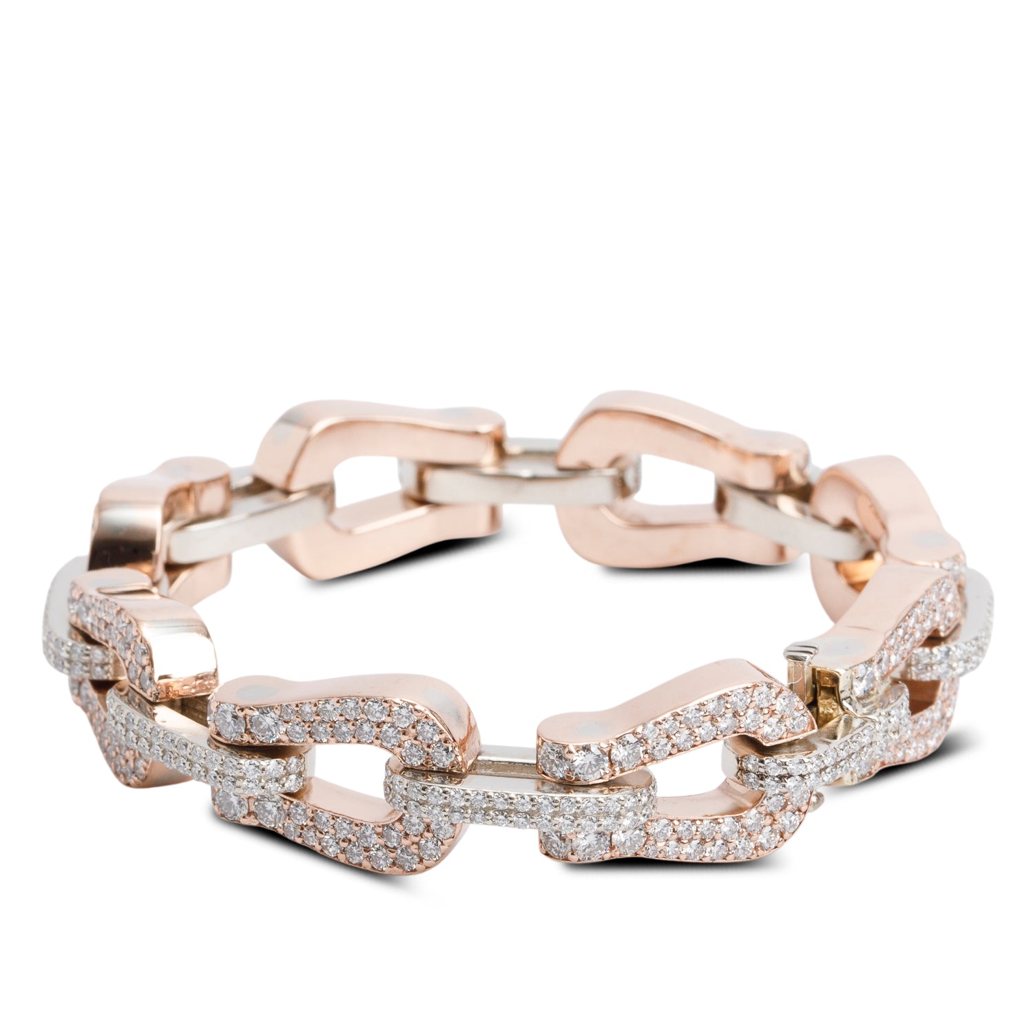 10k Rose & White Gold Pave Diamond Link Bracelet