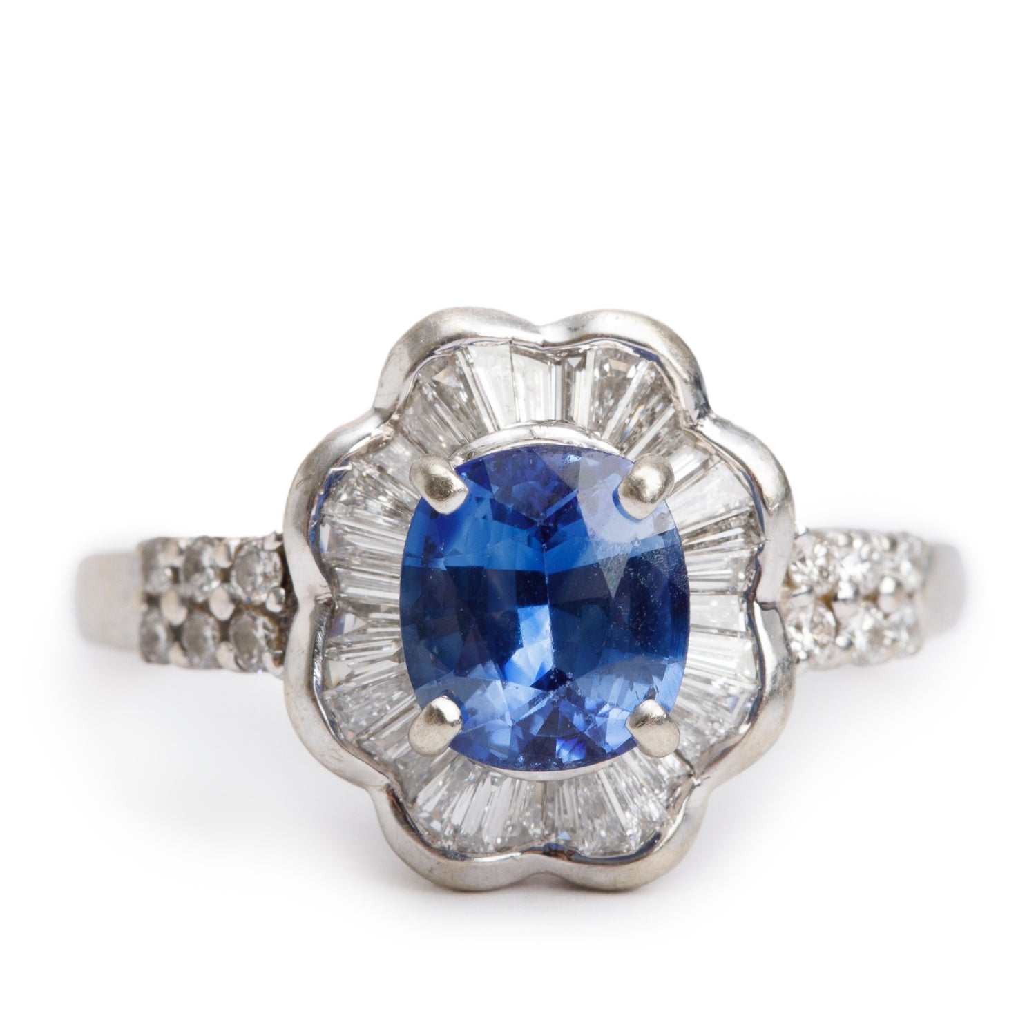 18k White Gold Sapphire and Diamond Ring, Size 8.75