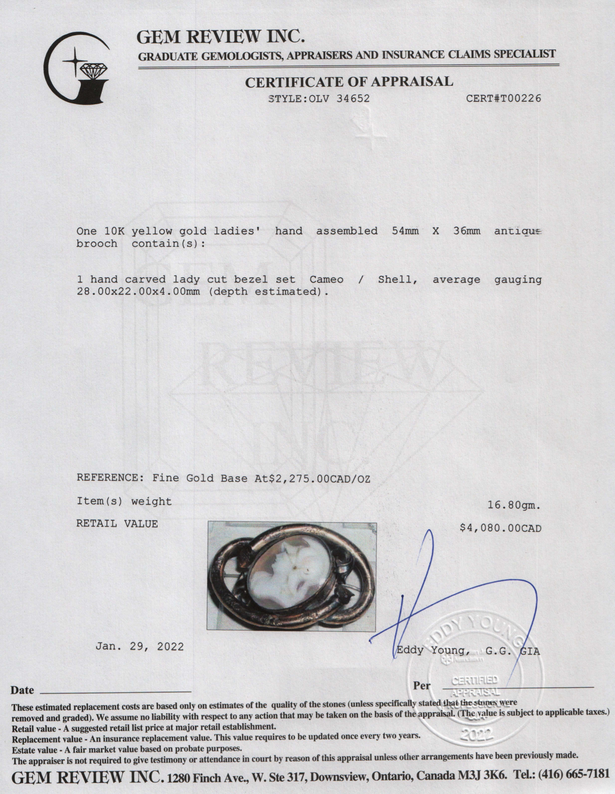 - 1 Hand Carved Bezel Set Cameo, Approximately 28 mm x 22 mm x 4 mm