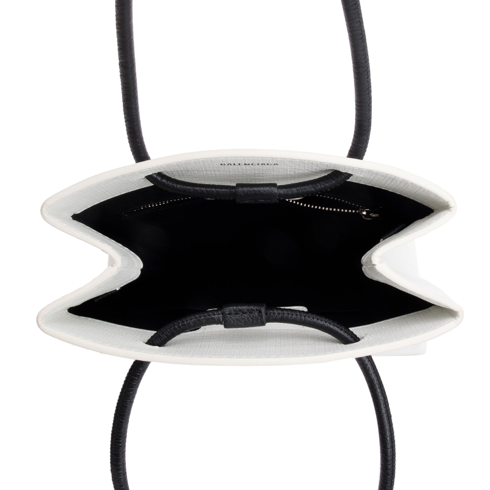 White Calfskin Leather XXS Logo Leather Shopping Tote