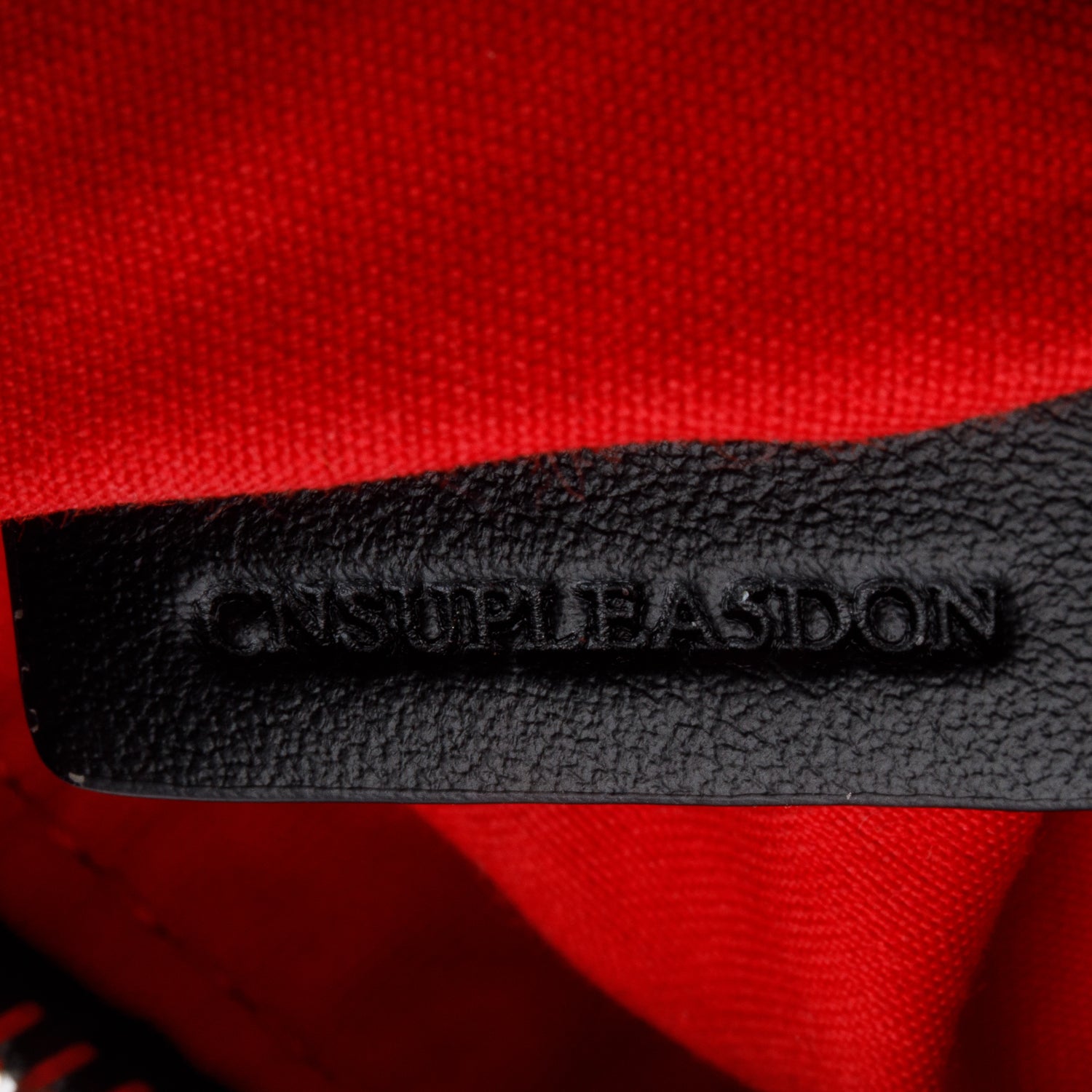 Condition: Very Good; slight wear at exterior corners and pilling at belt strap; minor scratches at leather and buckle.
