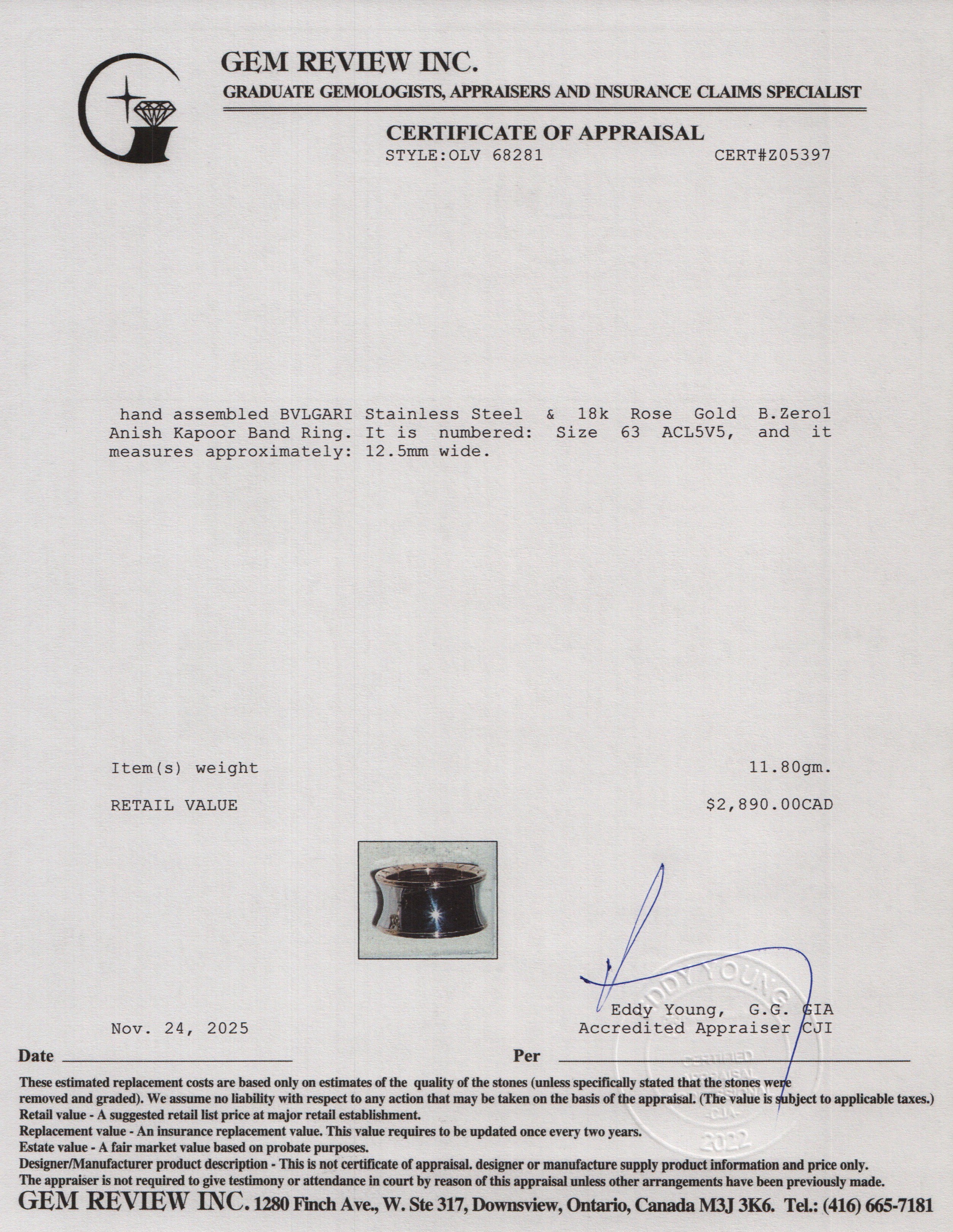 BVLGARI Stainless Steel & 18k Rose Gold B.Zero1 Anish Kapoor Band Ring, Size 63 10