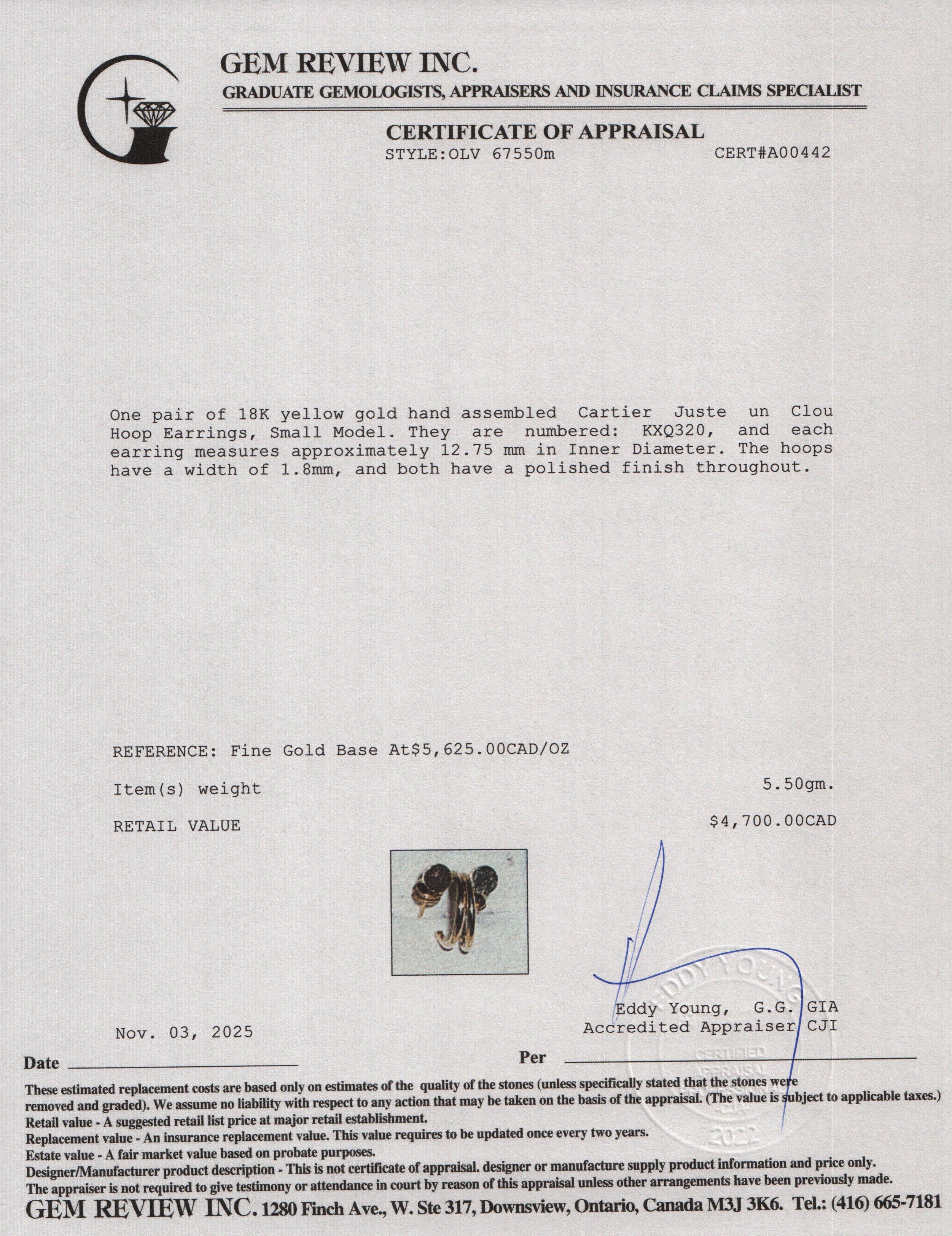 18k Yellow Gold Juste un Clou Hoop Earrings, Small Model