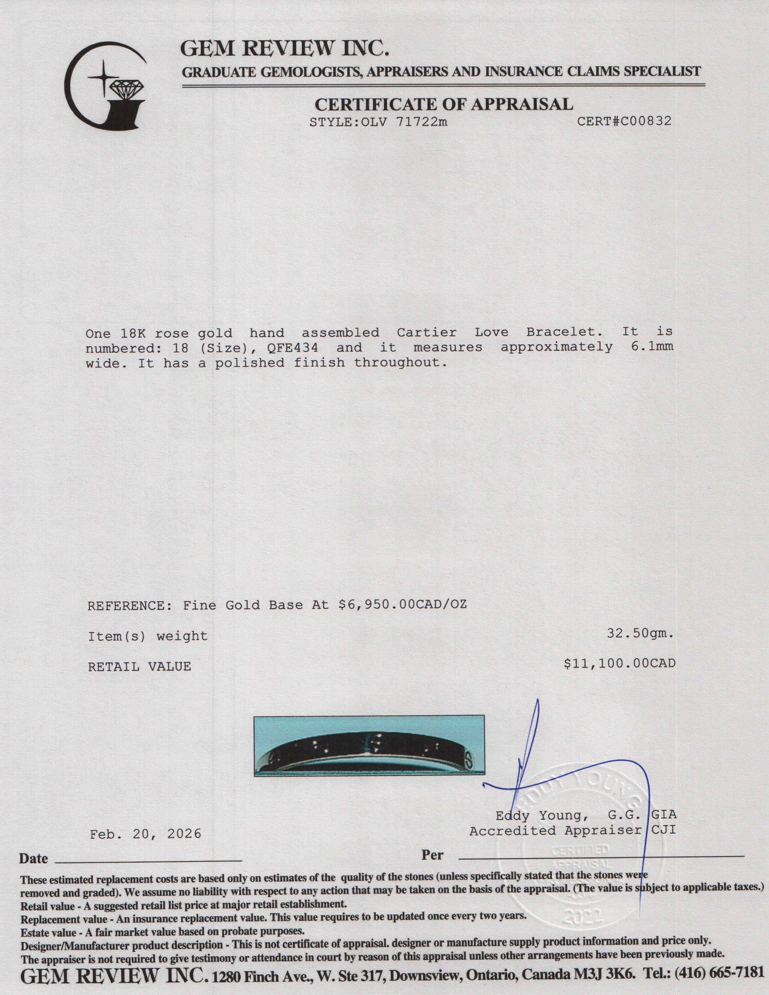 2022 18k Rose Gold Love Bracelet, Classic Model, Size 18 w/ Box & Certificate