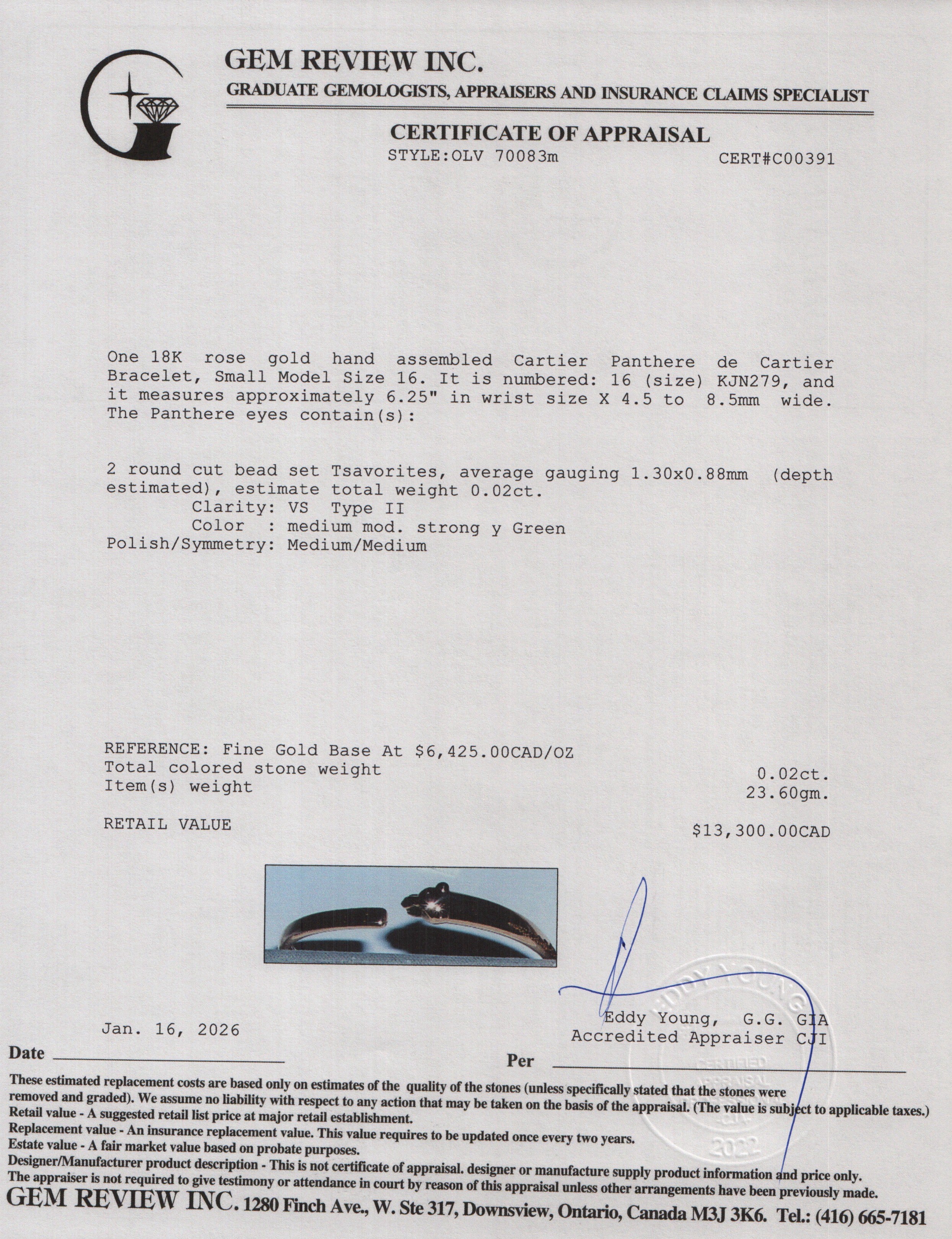 2022 18k Rose Gold Panthere de Bracelet, Small Model Size 16 w/ Box & Certificate