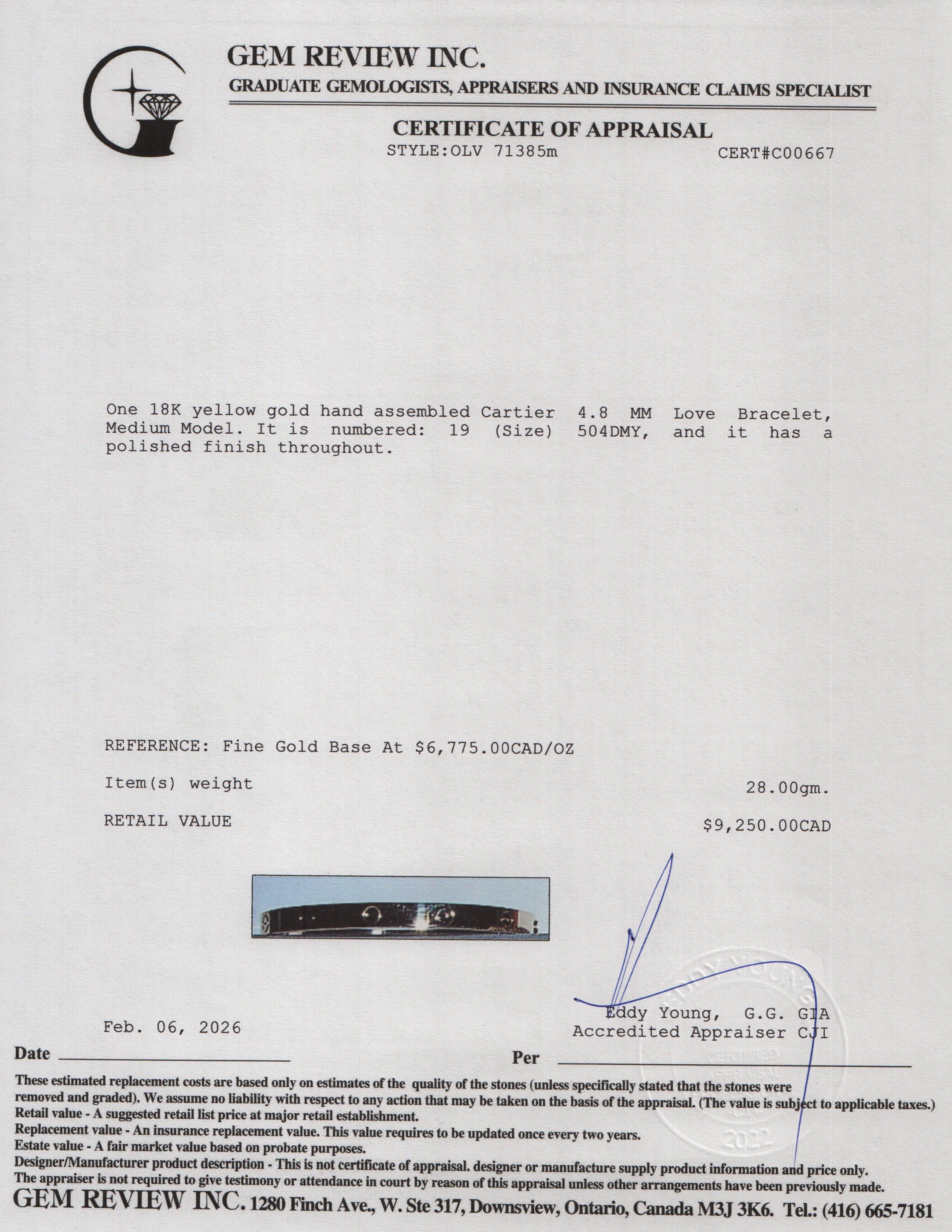 2025 18k Yellow Gold 4.8 MM Love Bracelet, Medium Model, Size 19 w/ Box & Certificate