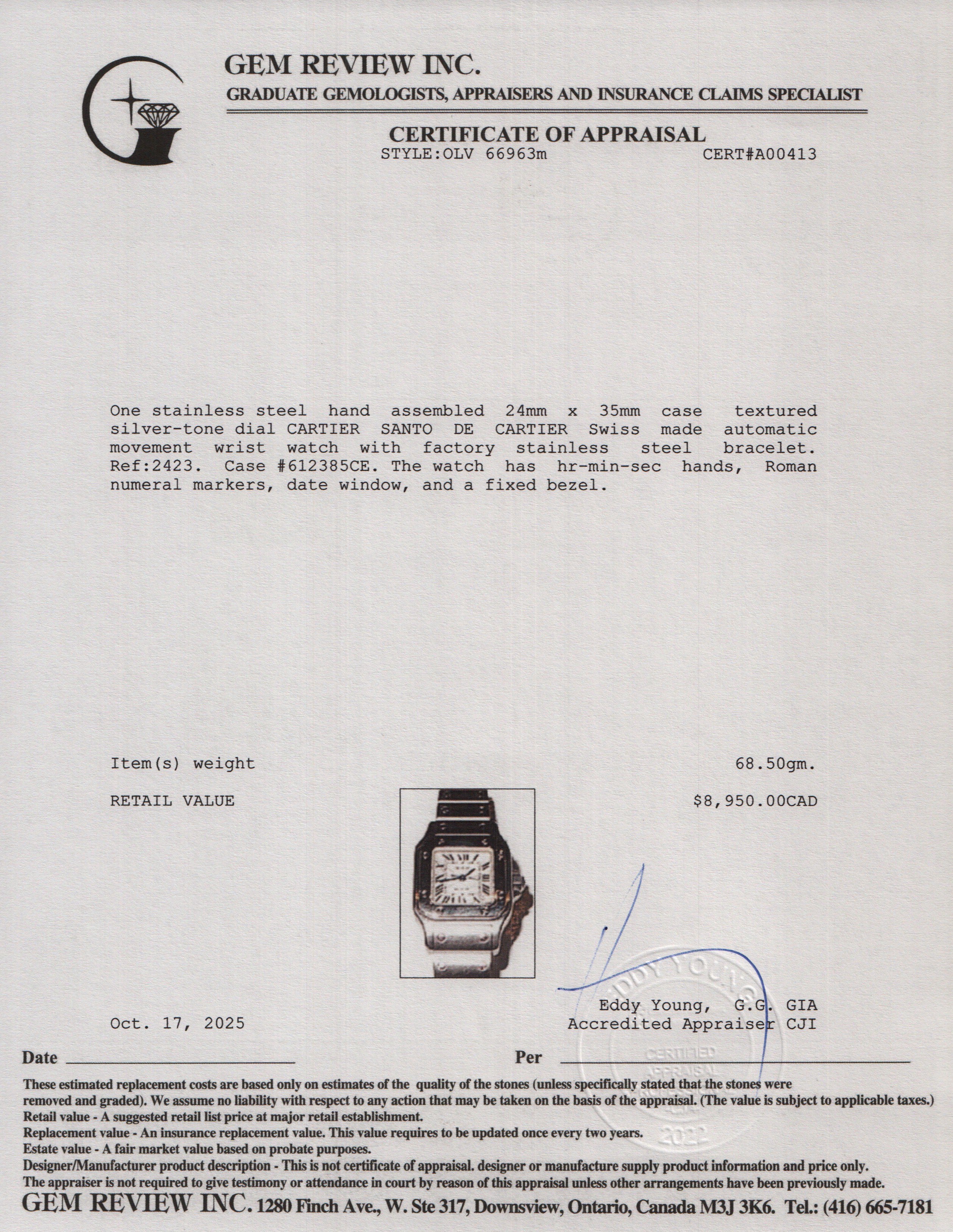 Stainless Steel Santos de Galbee Automatic Watch, Small Model 2423 w/ Box & Papers