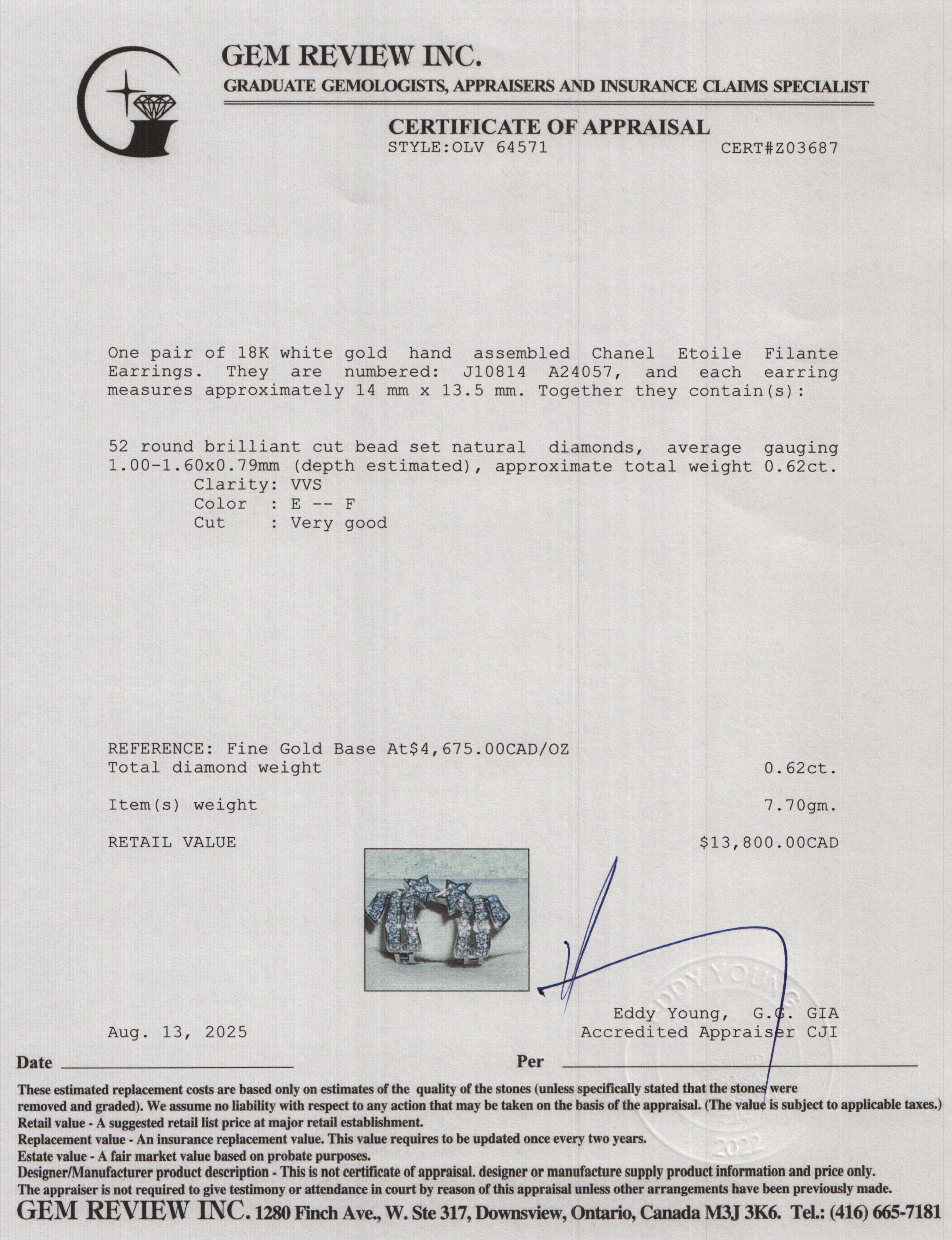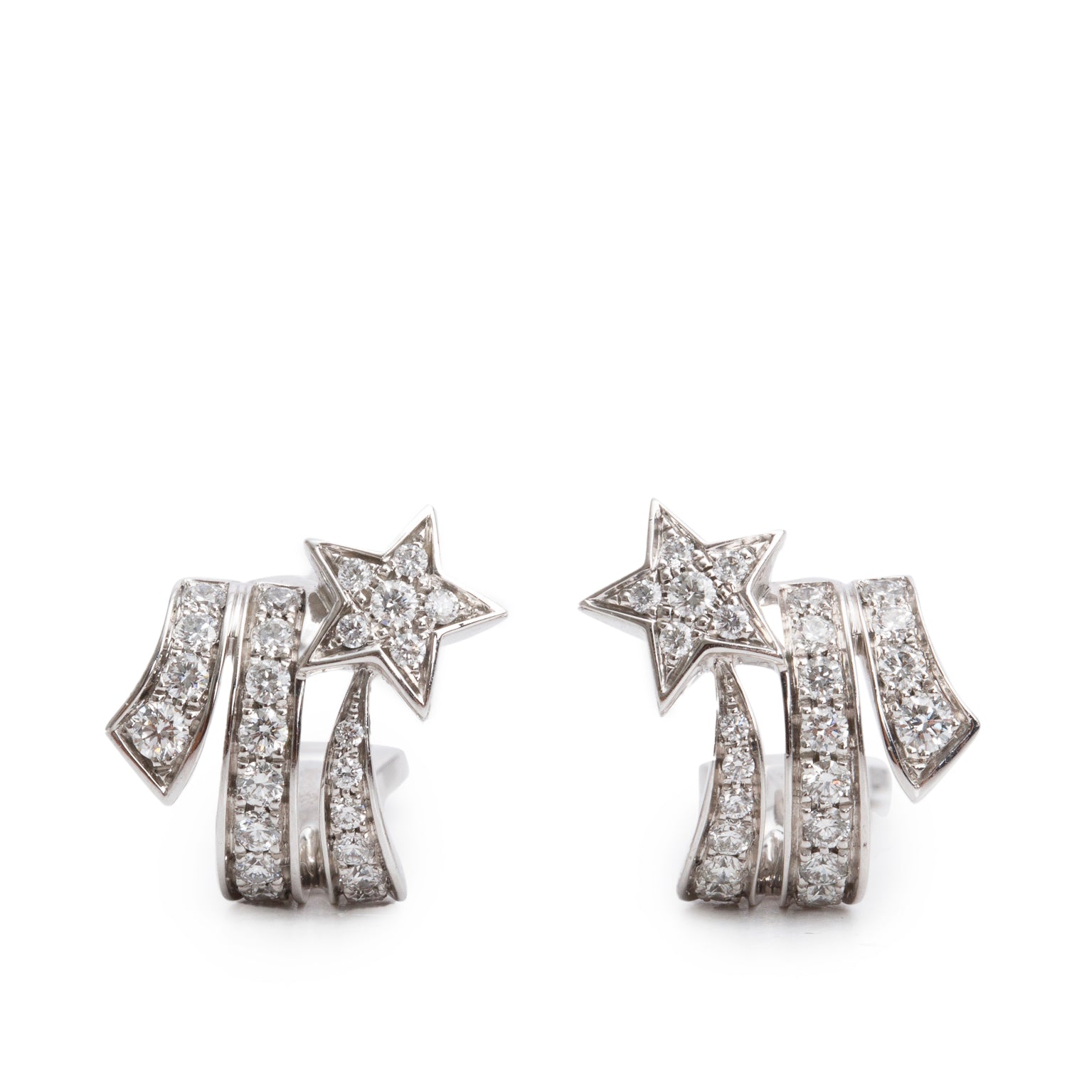 18k White Gold Diamond Etoile Filante Earrings w/ Box