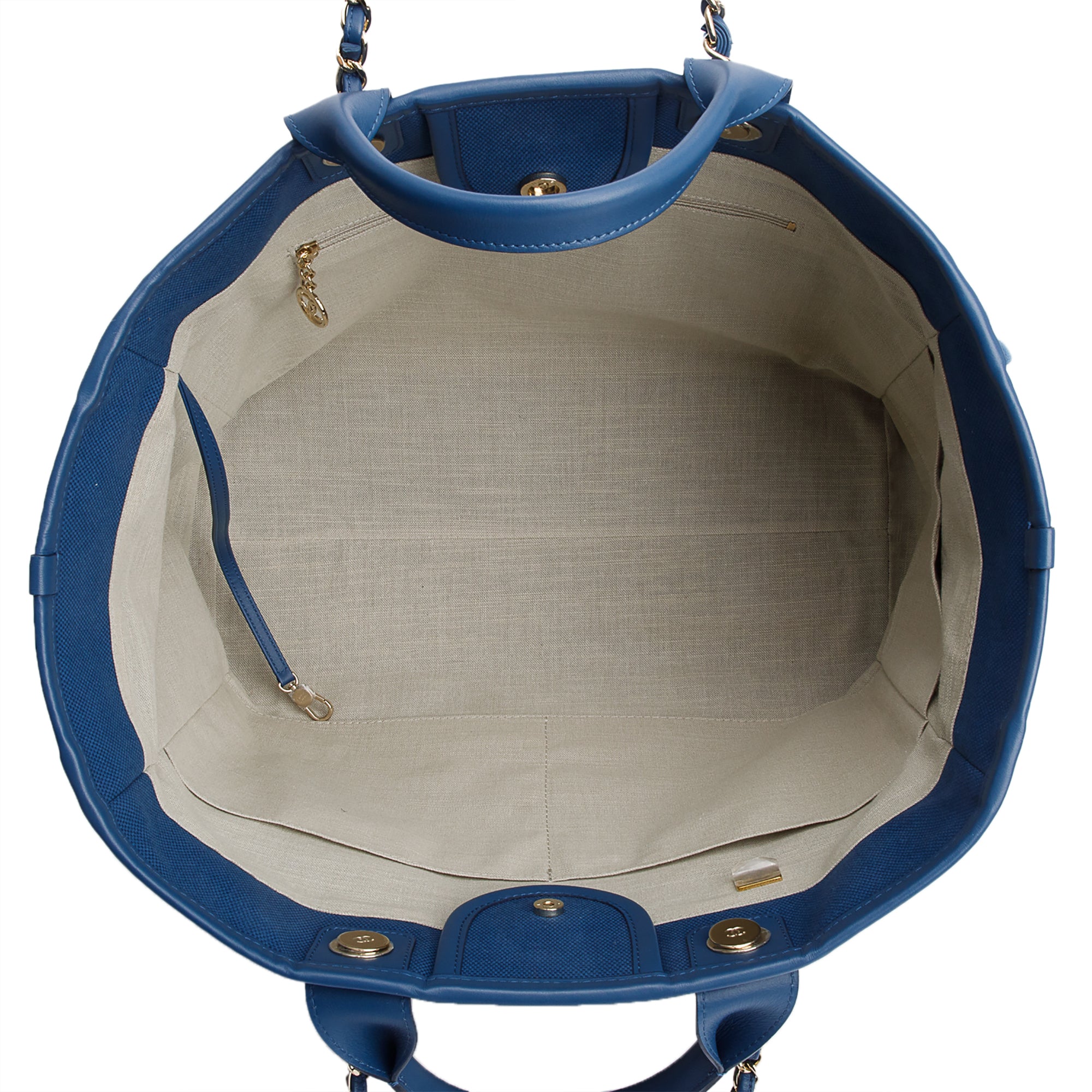 2023 Blue Cotton Large Deauville Tote w/ Pouch