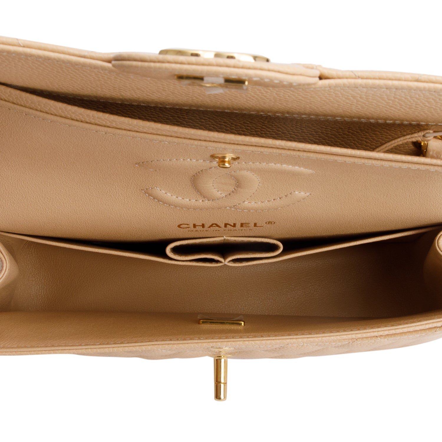2025 Beige Caviar Quilted Small Double Flap Bag w/ Box & Receipt