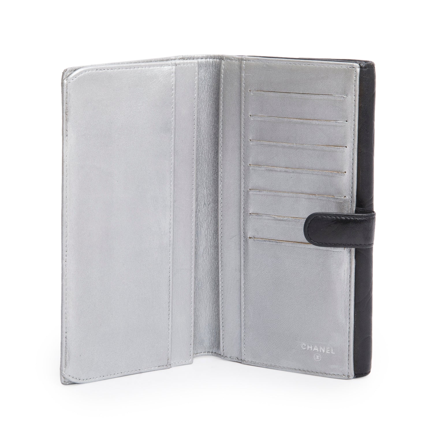Black Lambskin Camellia Embossed Large Flap Wallet