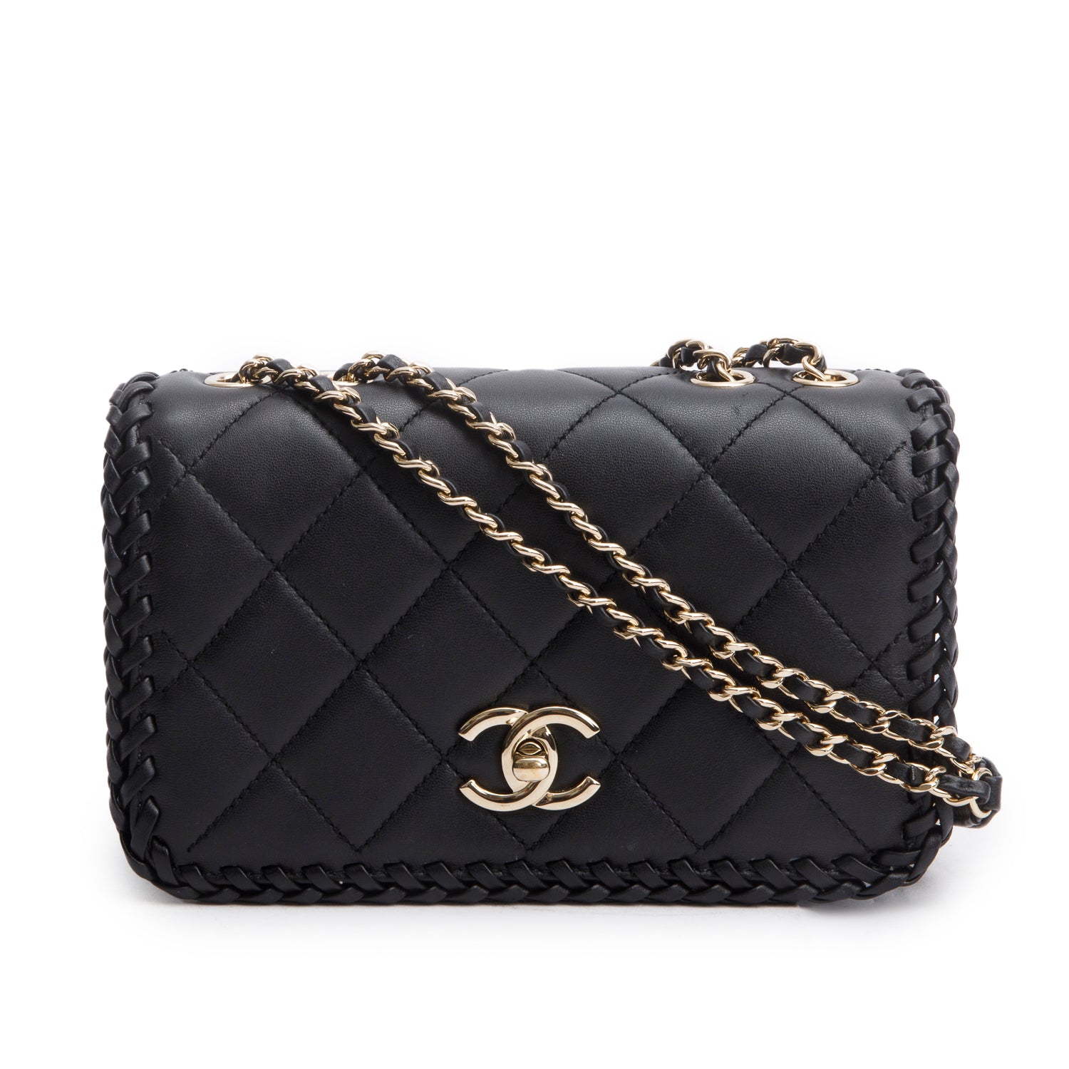 Black Lambskin Quilted Small Whipstitch Flap Bag