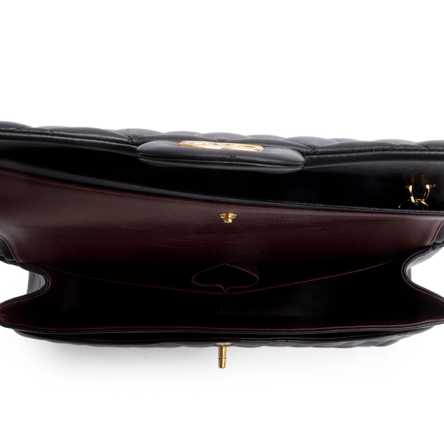Black Quilted Lambskin Leather Jumbo Double Flap Bag w/ Box & Authenticity Card