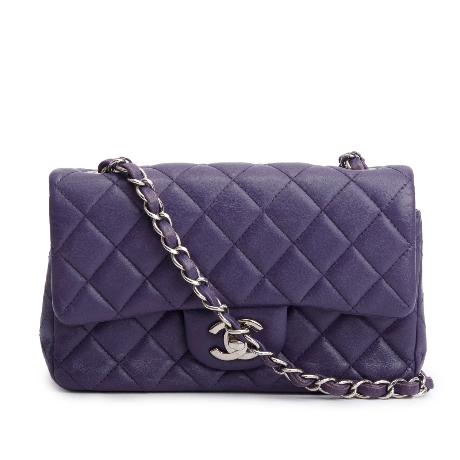 Quilted Purple Lambskin Mini Rectangular Flap Bag