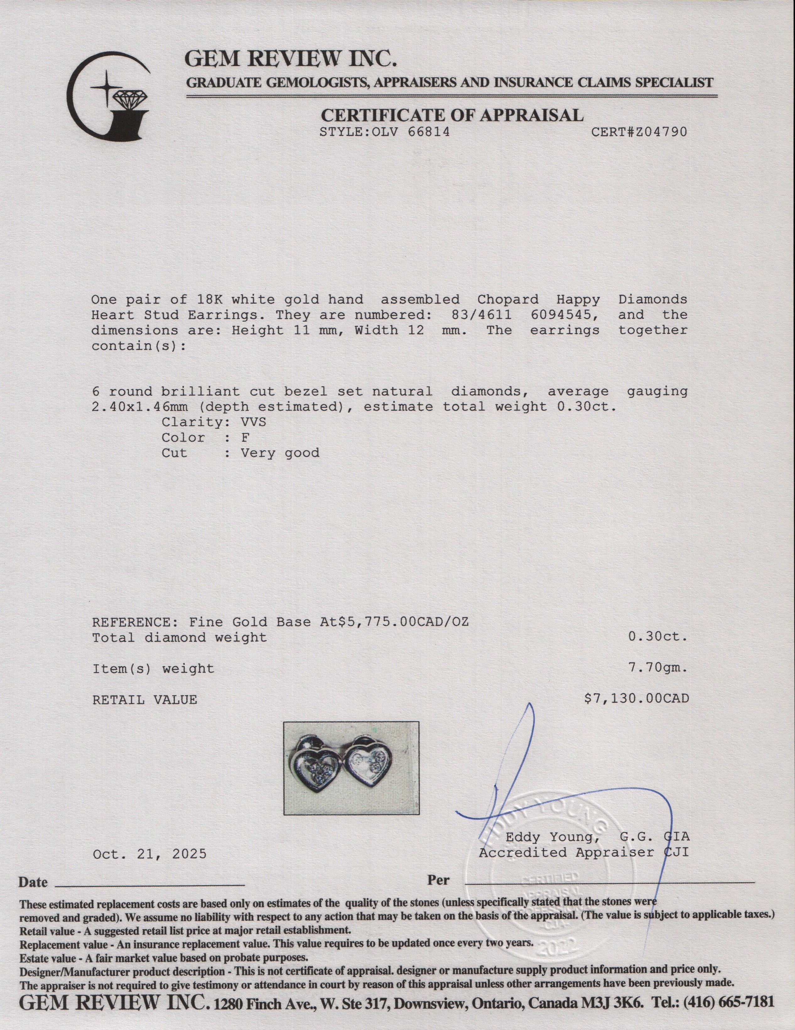 18k White Gold Happy Diamonds Heart Stud Earrings