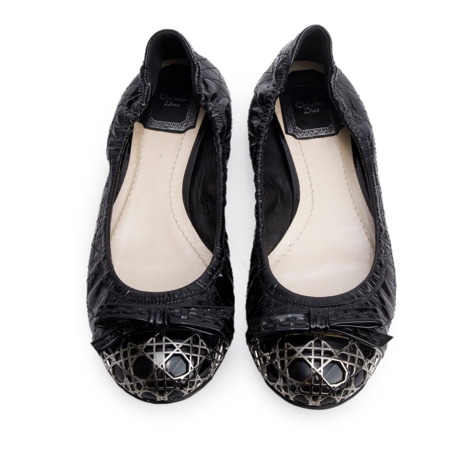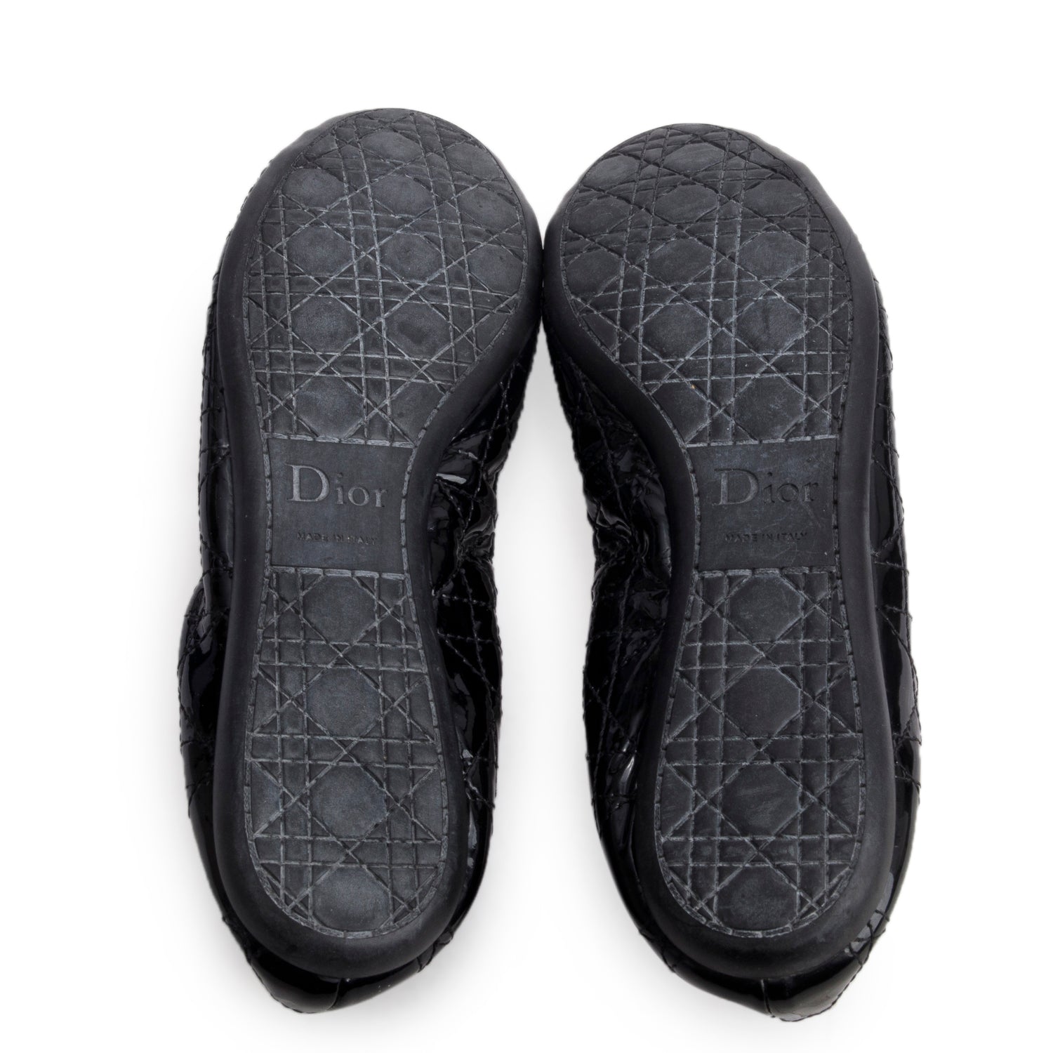 Black Patent Leather Icon Cannage Ballerine Flats, Size 36.5 w/ Box