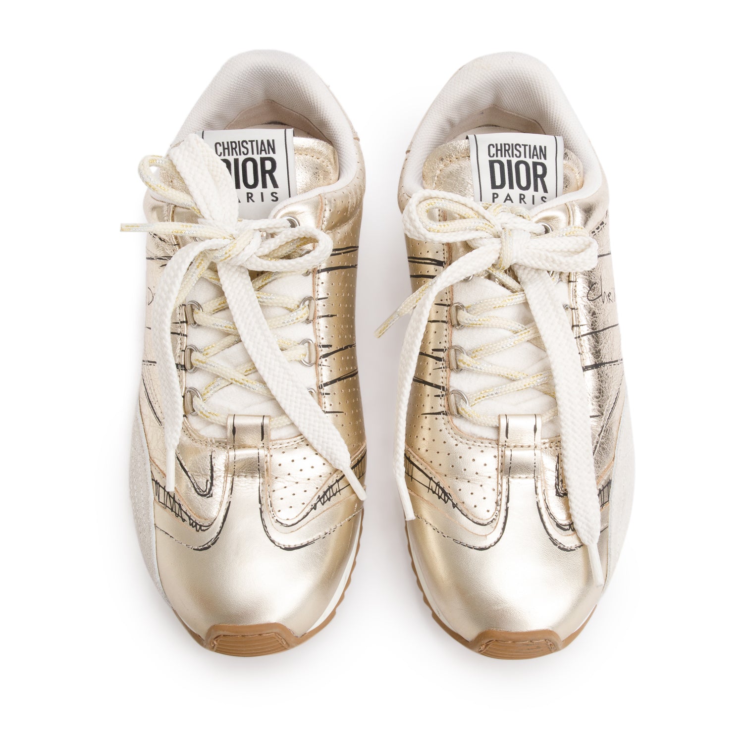 Metallic Gold Leather Beige Suede D-Sketch Sneakers, Size 38 w/ Box