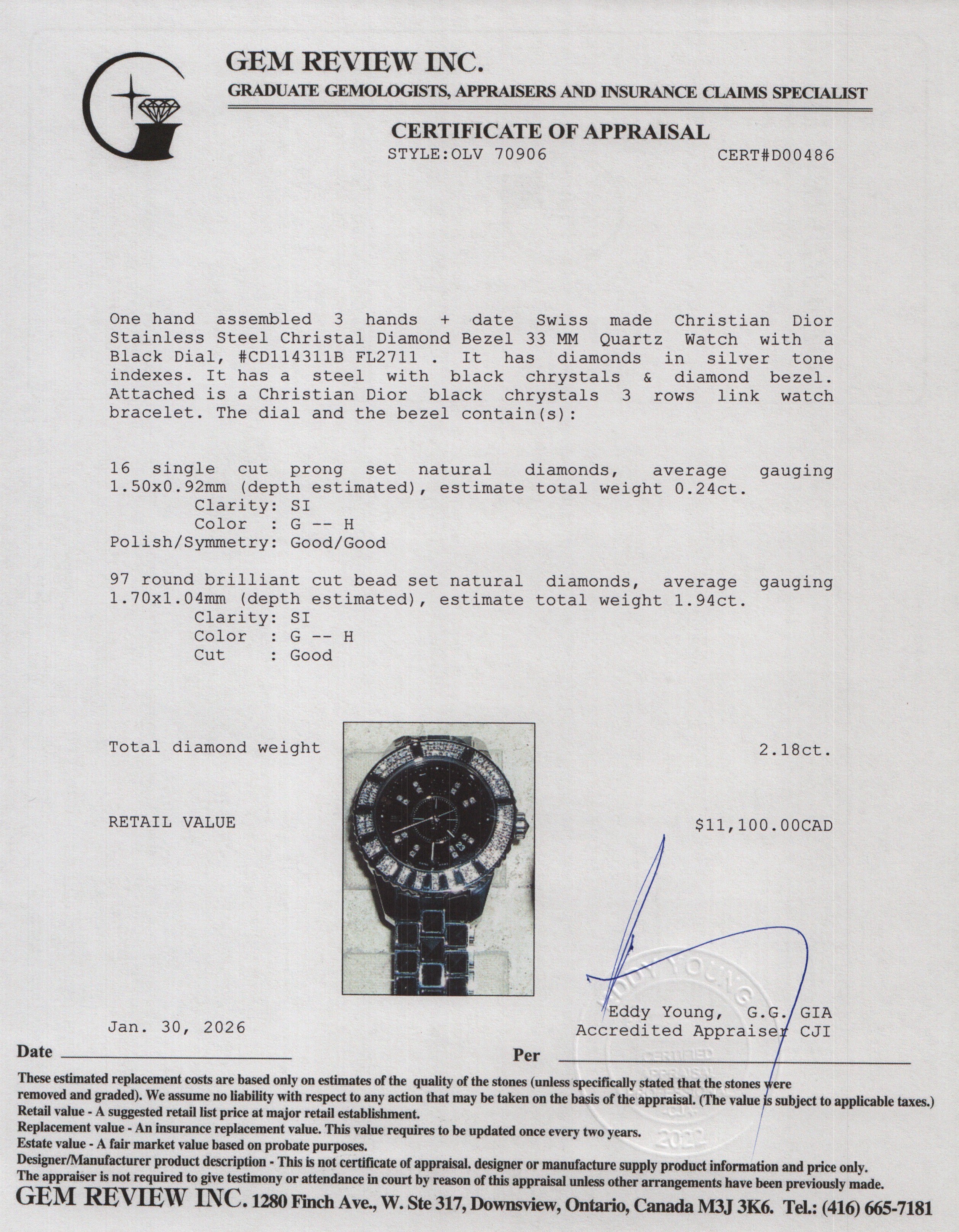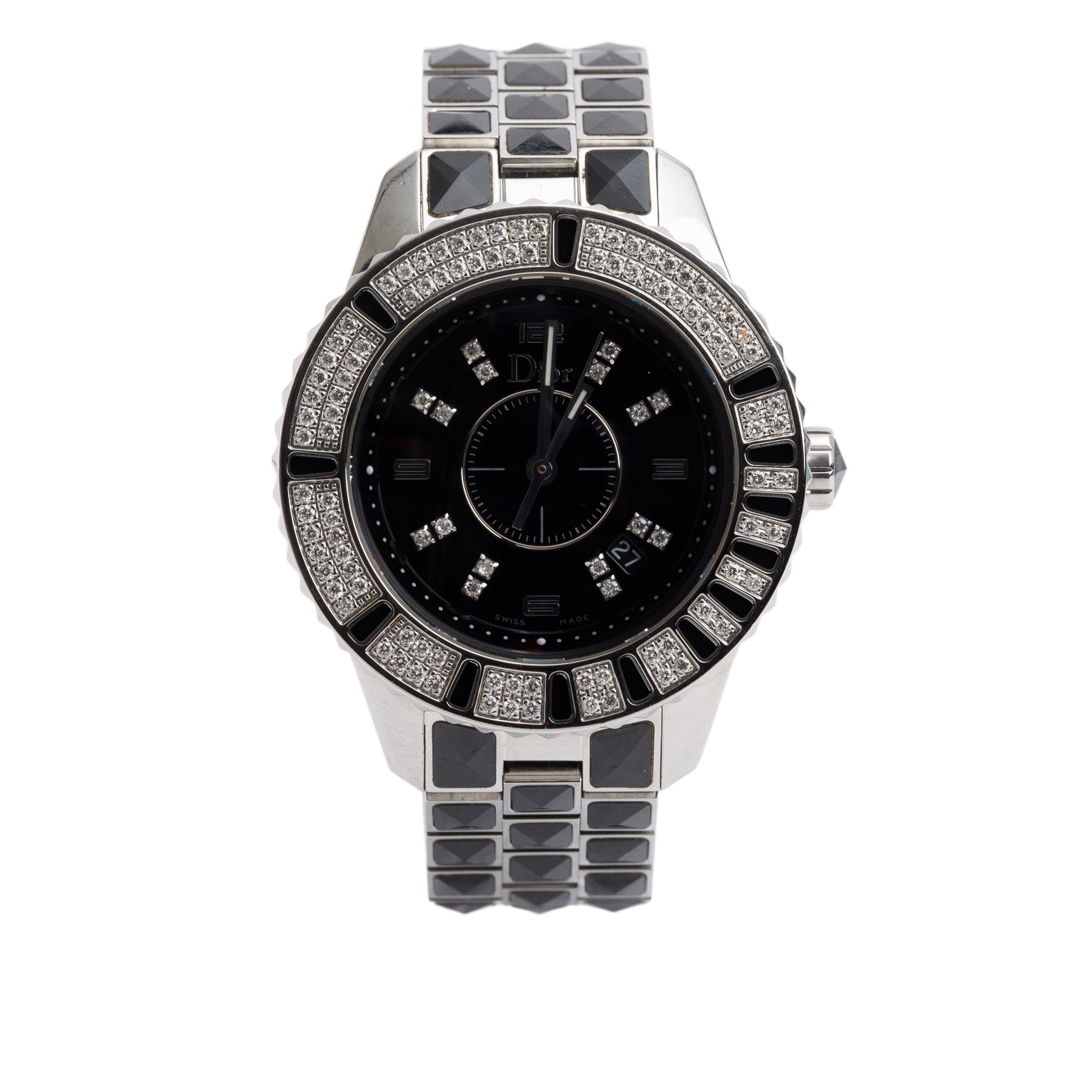 Stainless Steel Christal Diamond Bezel 33 MM Quartz Watch Black Diamond Dial CD114311