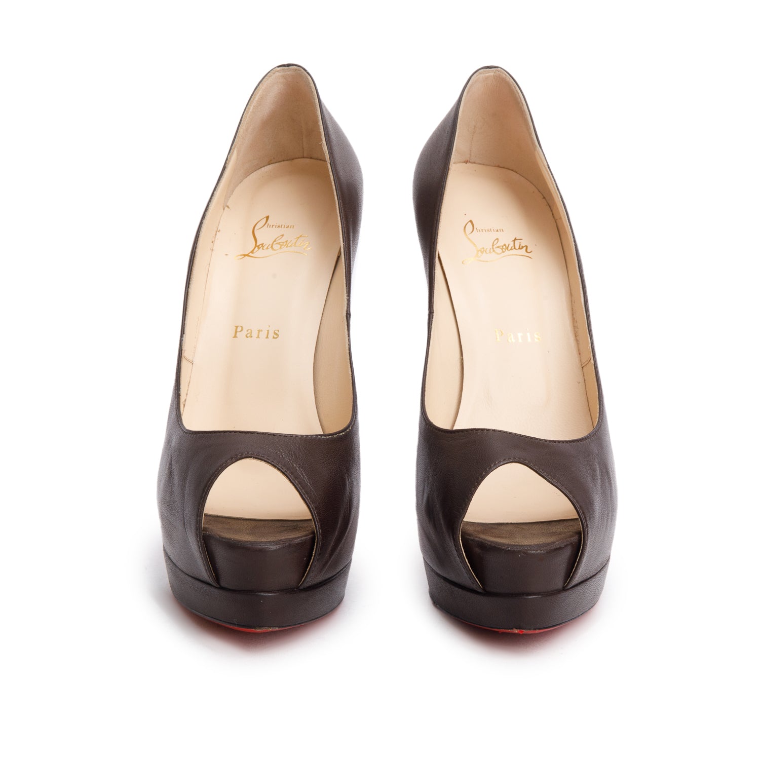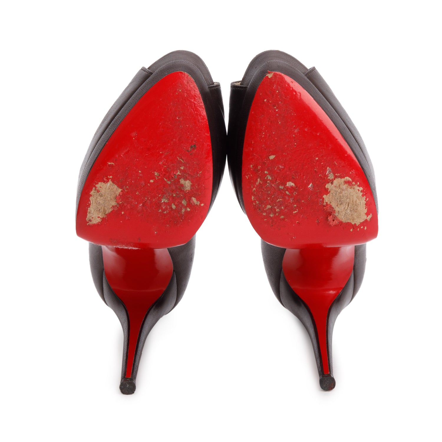 Black Leather Lady Peep 150 Pumps, Size 40