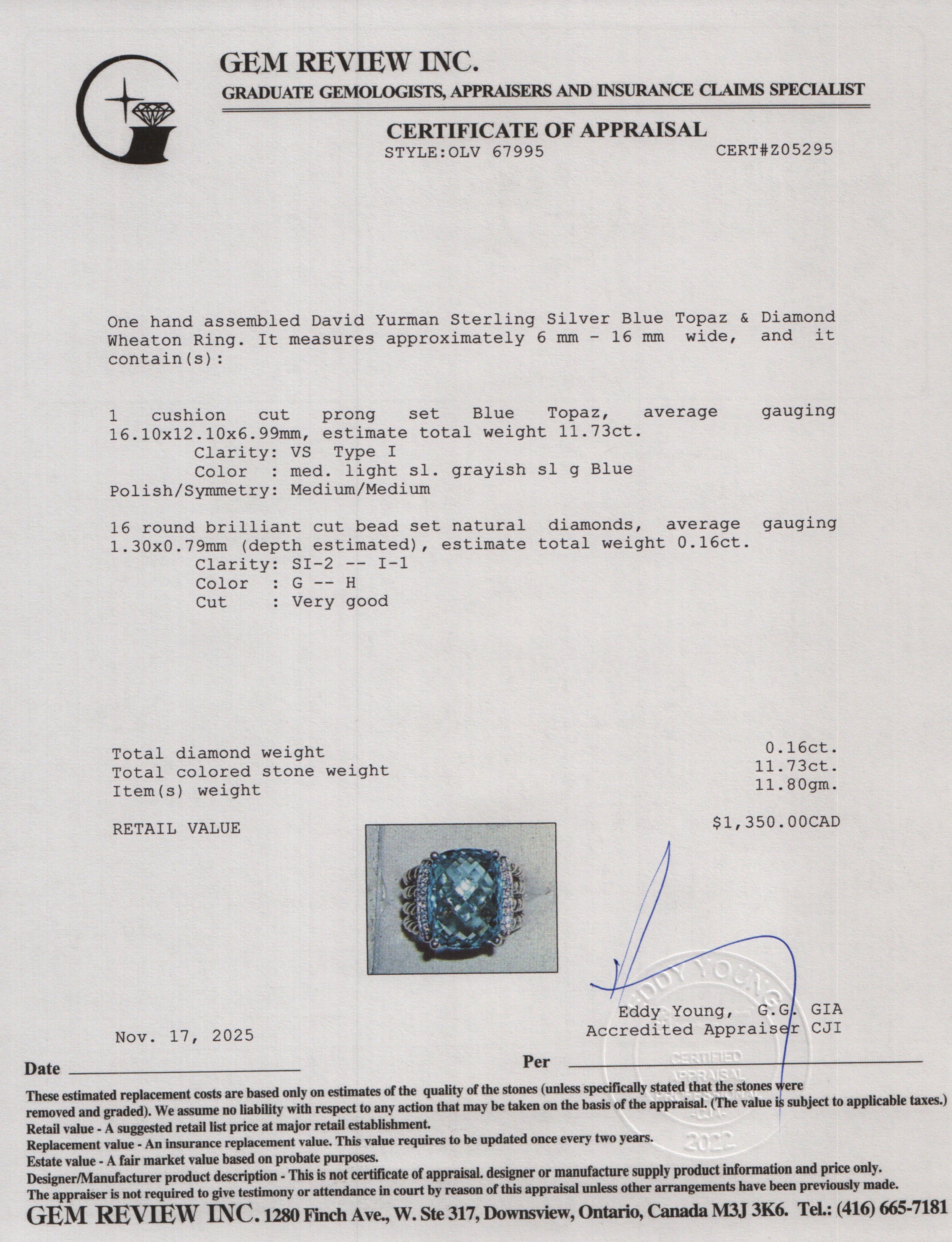 Sterling Silver Blue Topaz & Diamond Wheaton Ring, Size 7